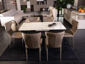 The Maya Dining Chair is a modern take on the iconic Lara Chair, featuring sleek metallic painted legs for a contemporary look. Introduced in 1993, this chair combines comfort and style with a high backrest for support and a rounded bottom that adds elegance and a subtle rocking motion. Its luxurious design is complemented by…