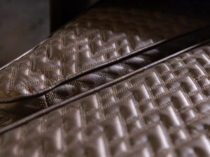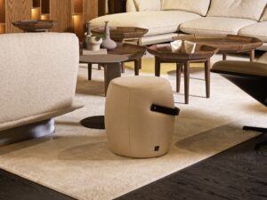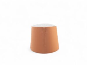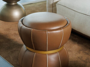 The “Bucket” pouf embodies the meeting point of craftsmanship and contemporary design, where soft geometry and material contrast define its distinctive allure. Its tapered form is wrapped in an elegant chevron-patterned fabric, beautifully framed by a smooth leather accent that adds structure and warmth. A subtle metal detail enhances its refined silhouette, reflecting the precision…