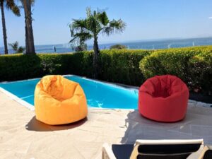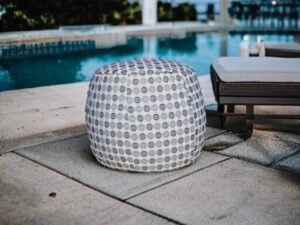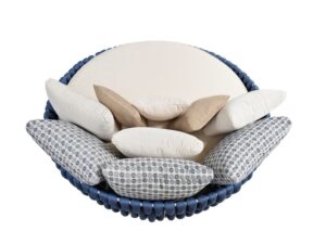 Moana is a unique set of three-dimensional pouffes with stone-like shapes, designed specifically for outdoor use. The cushions feature a detachable cover available in various materials and colors, with visible topstitches that enhance their rounded forms. Paired with coffee tables from the same series, they create playful, customizable compositions. A waterproof, breathable polyester cover protects…