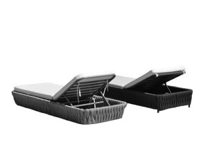 Lauren chaise is distinguished by a mix of aluminum frames, teak and stone for the table tops, seats with braided polyester cushions, and all of these materials are fully weatherproof. The designer wanted to create a dense braiding that would still allow air to pass through, evoking the braiding of the ropes used to moor…