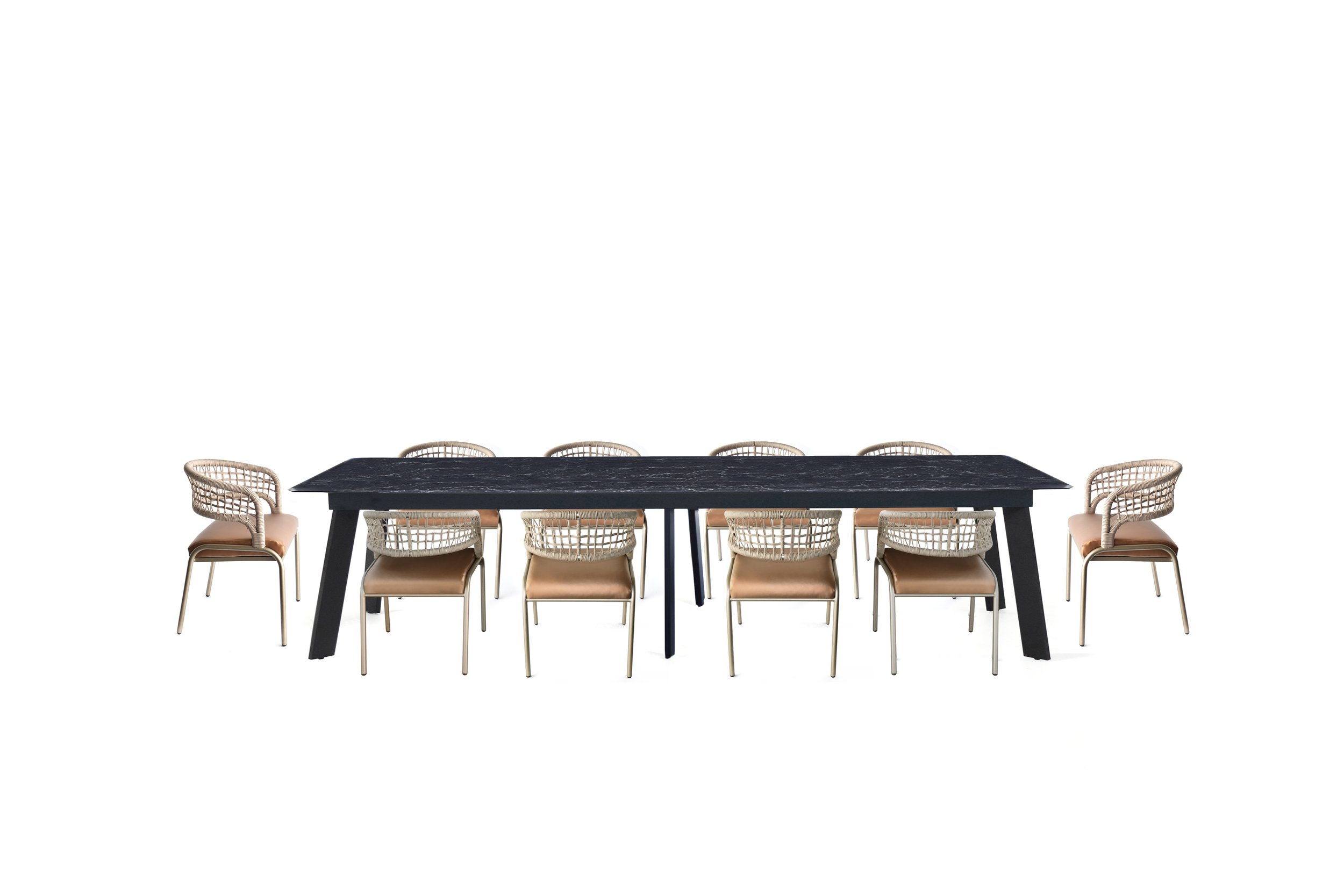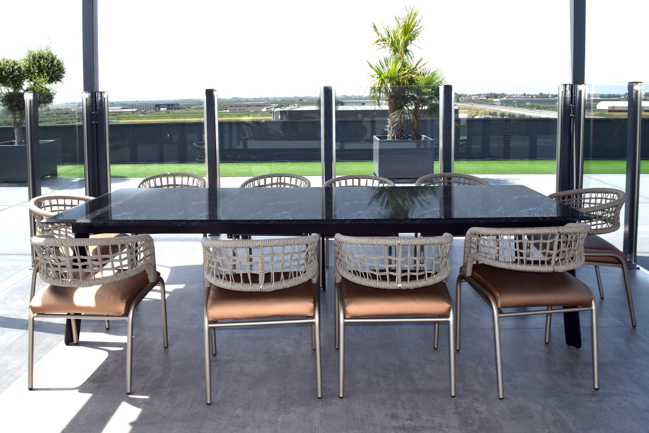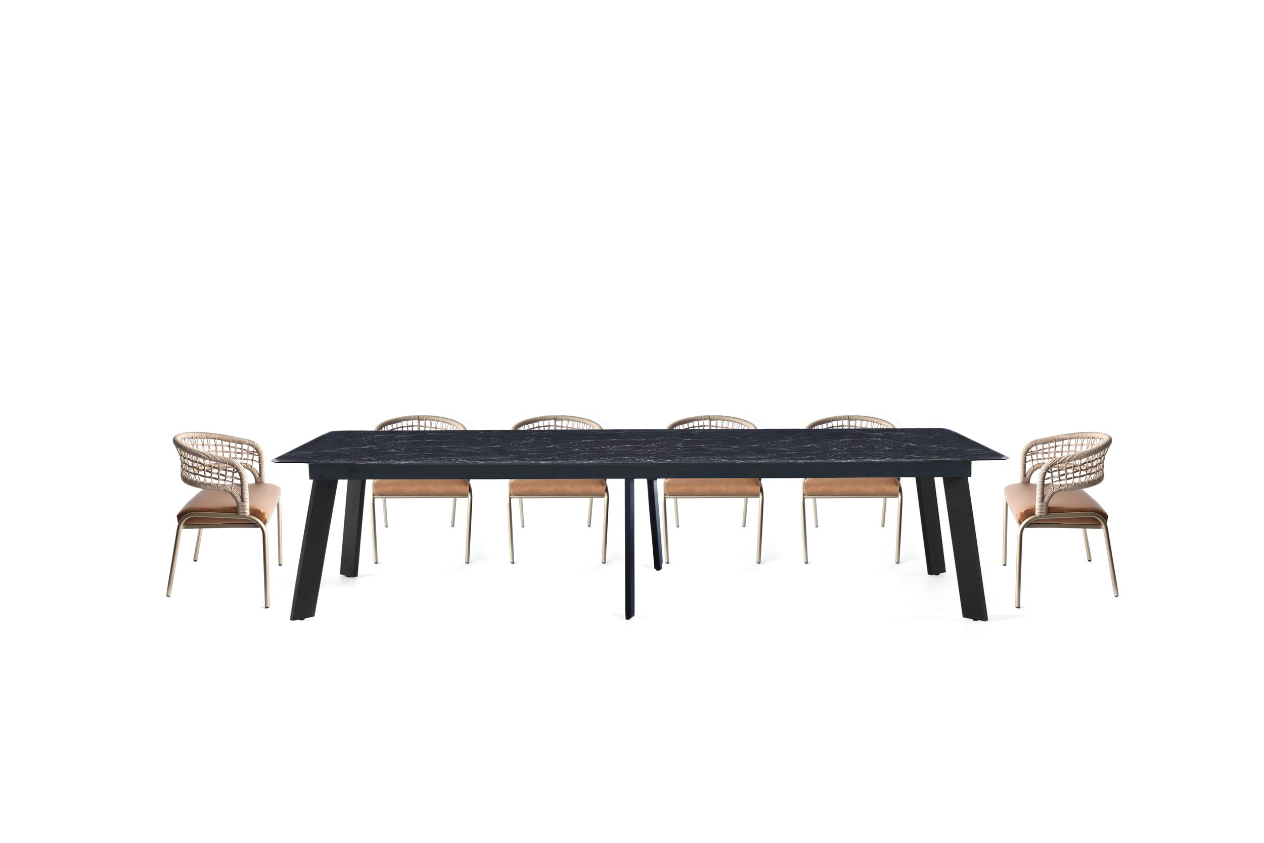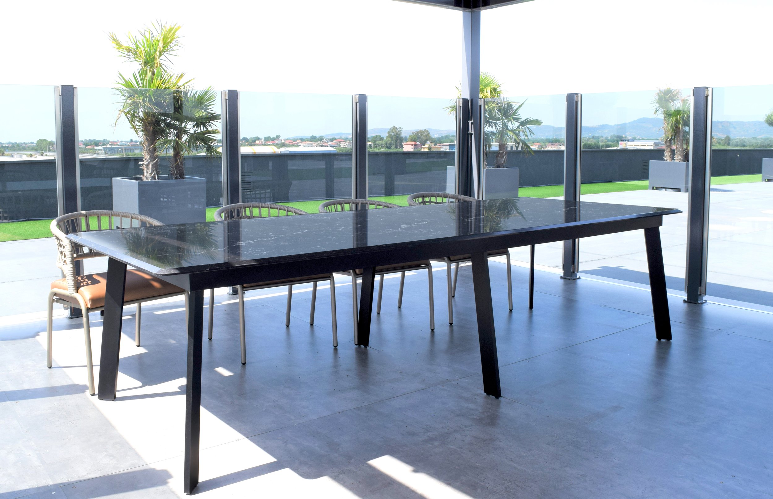 Adelaide Dining Table a stone table top and aluminium base is the pinnacle of contemporary design, combining beauty and utility.This eye catching table can make any room feel elegant and comfortable.The table’s corners and extremely wide legs give it an appealingly simple form without sacrificing its individuality.