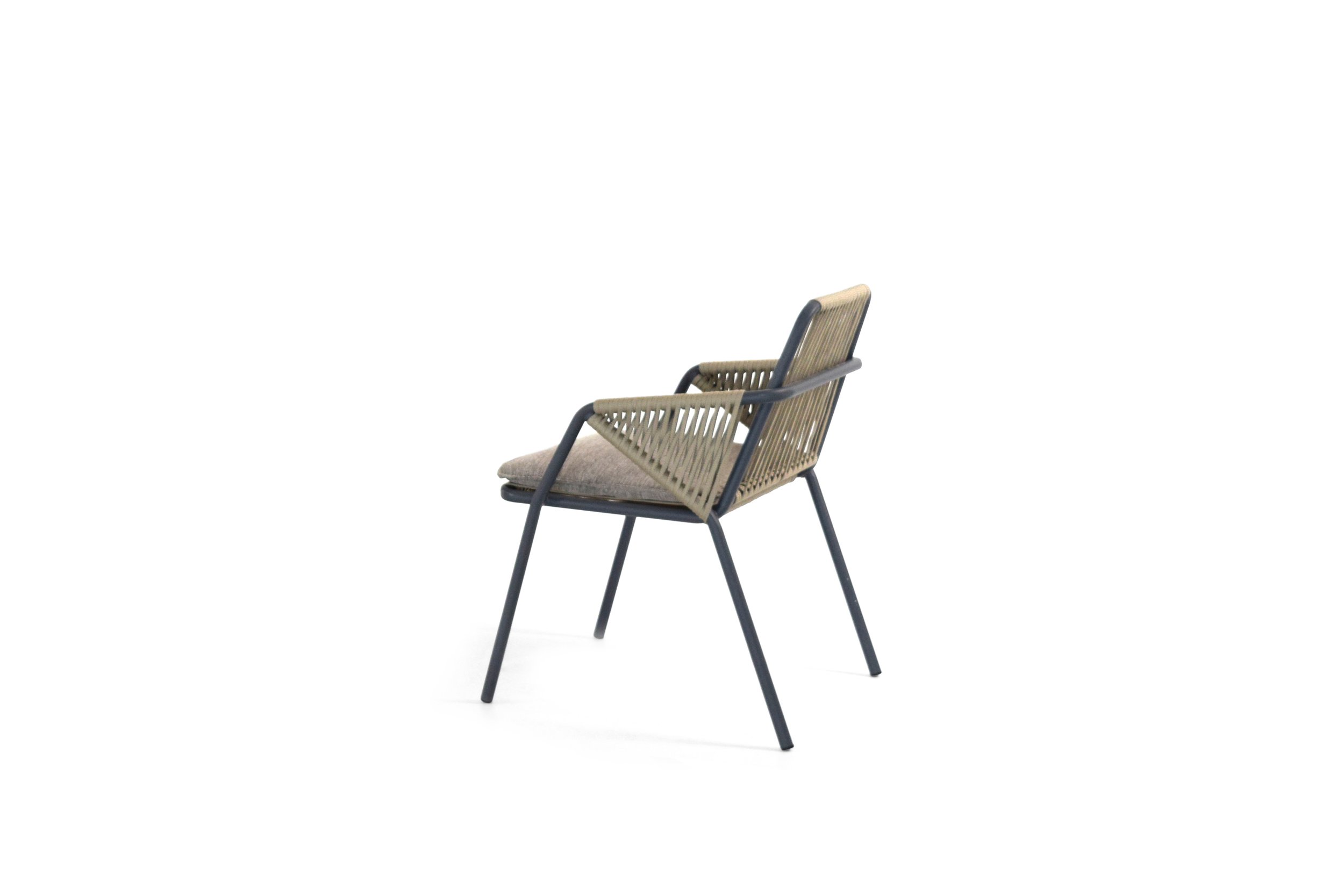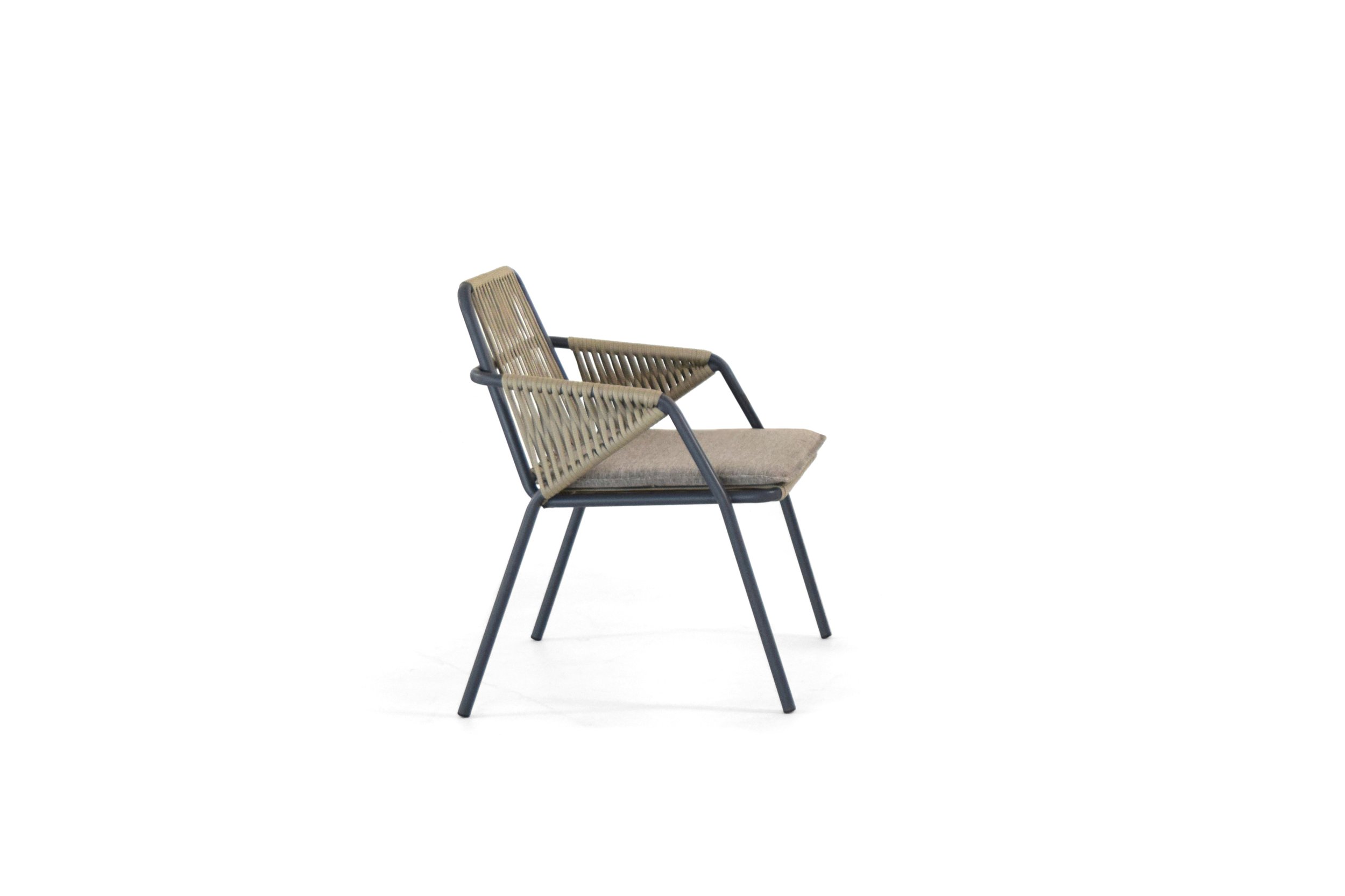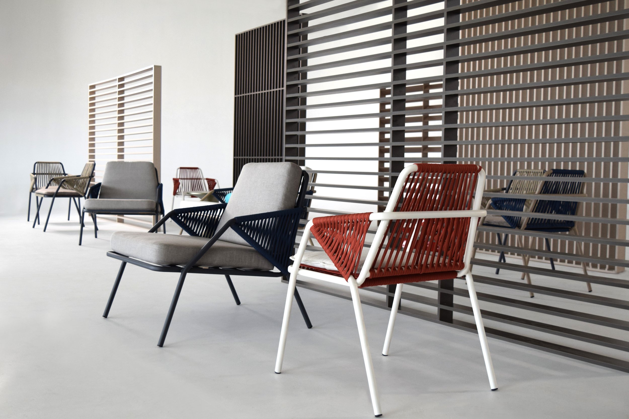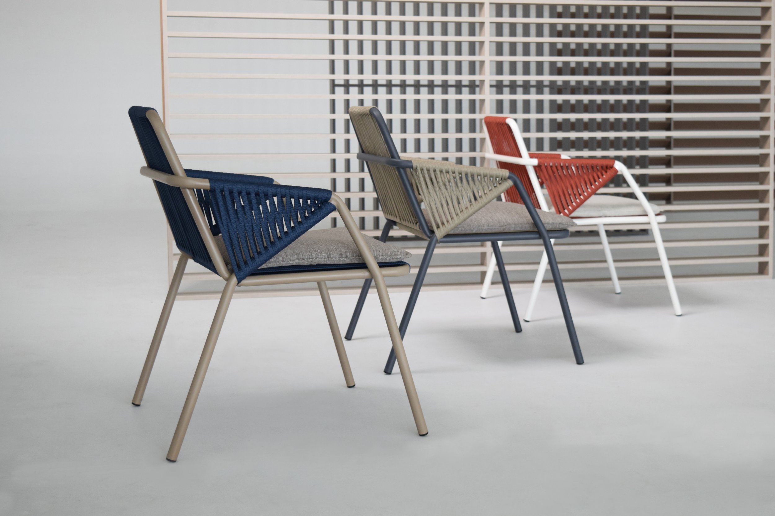 The idea of Antibes comes from the desire to create an outdoor collection capable of making any outdoor space elegant: a contemporary chair that combines two materials, the aluminum structure and the rope covering.