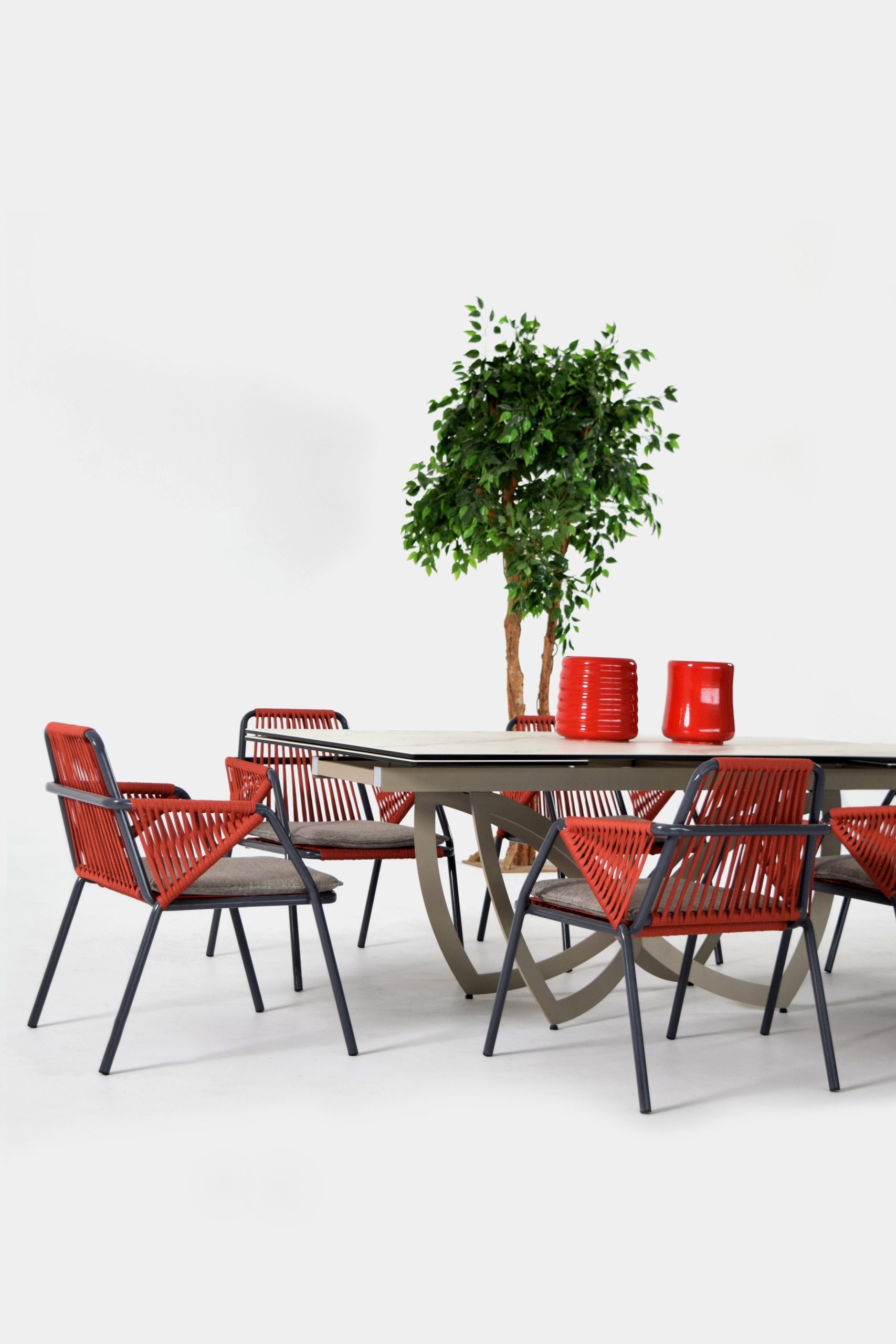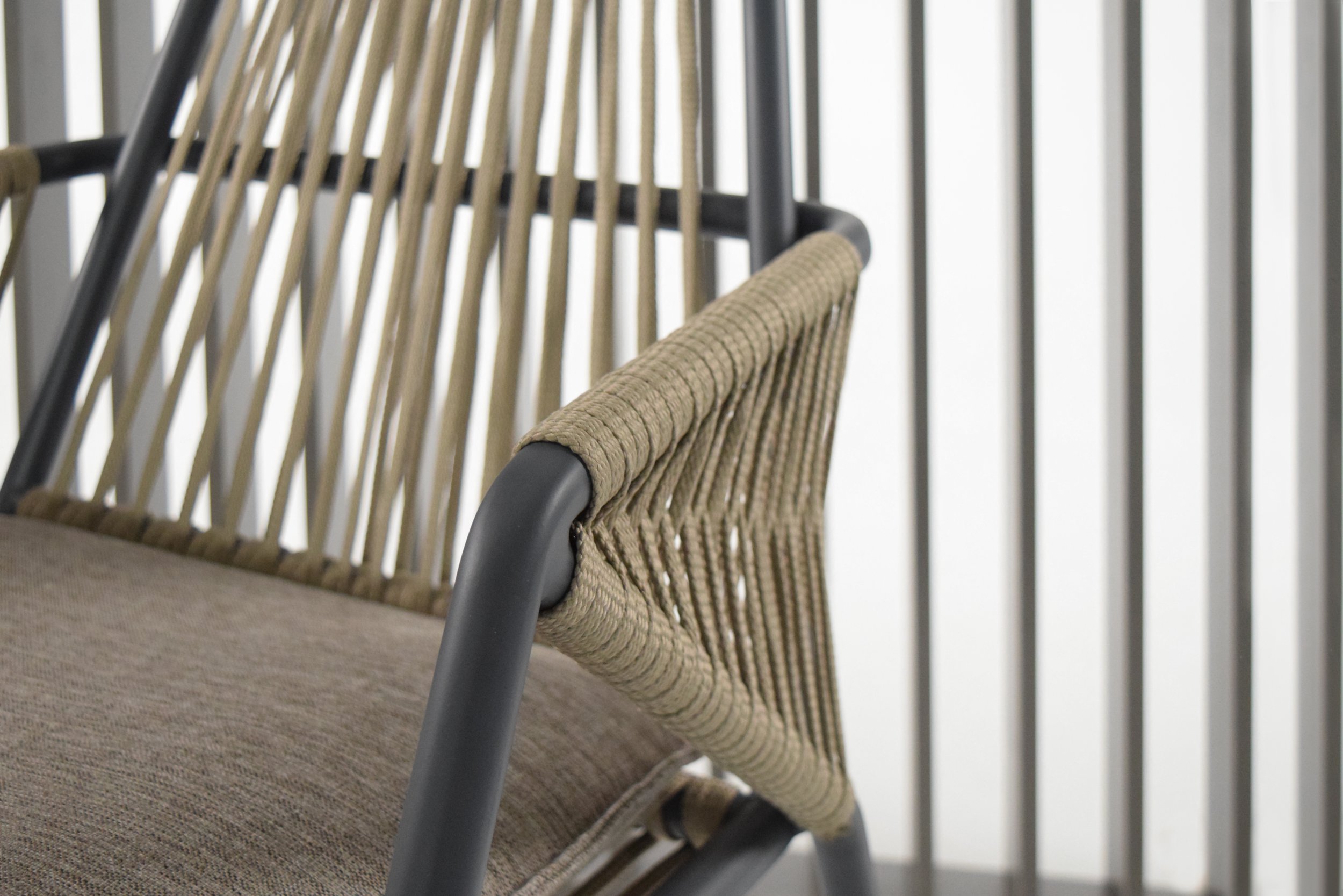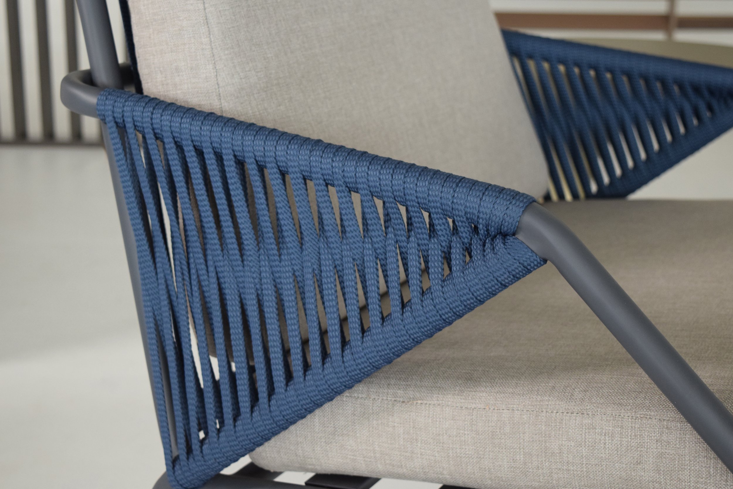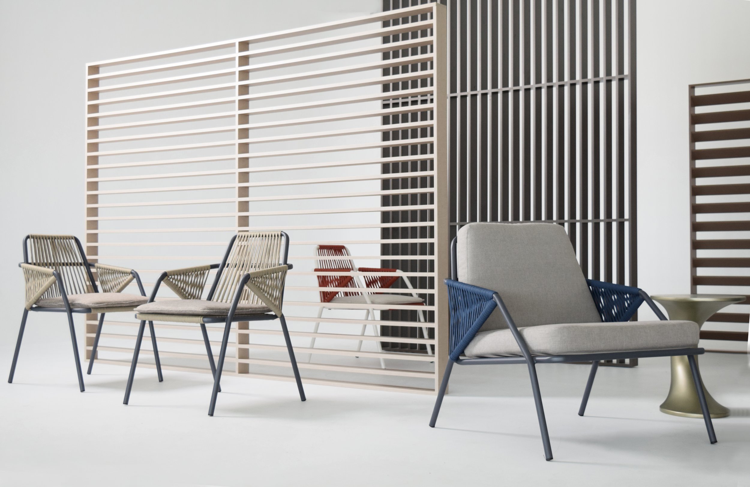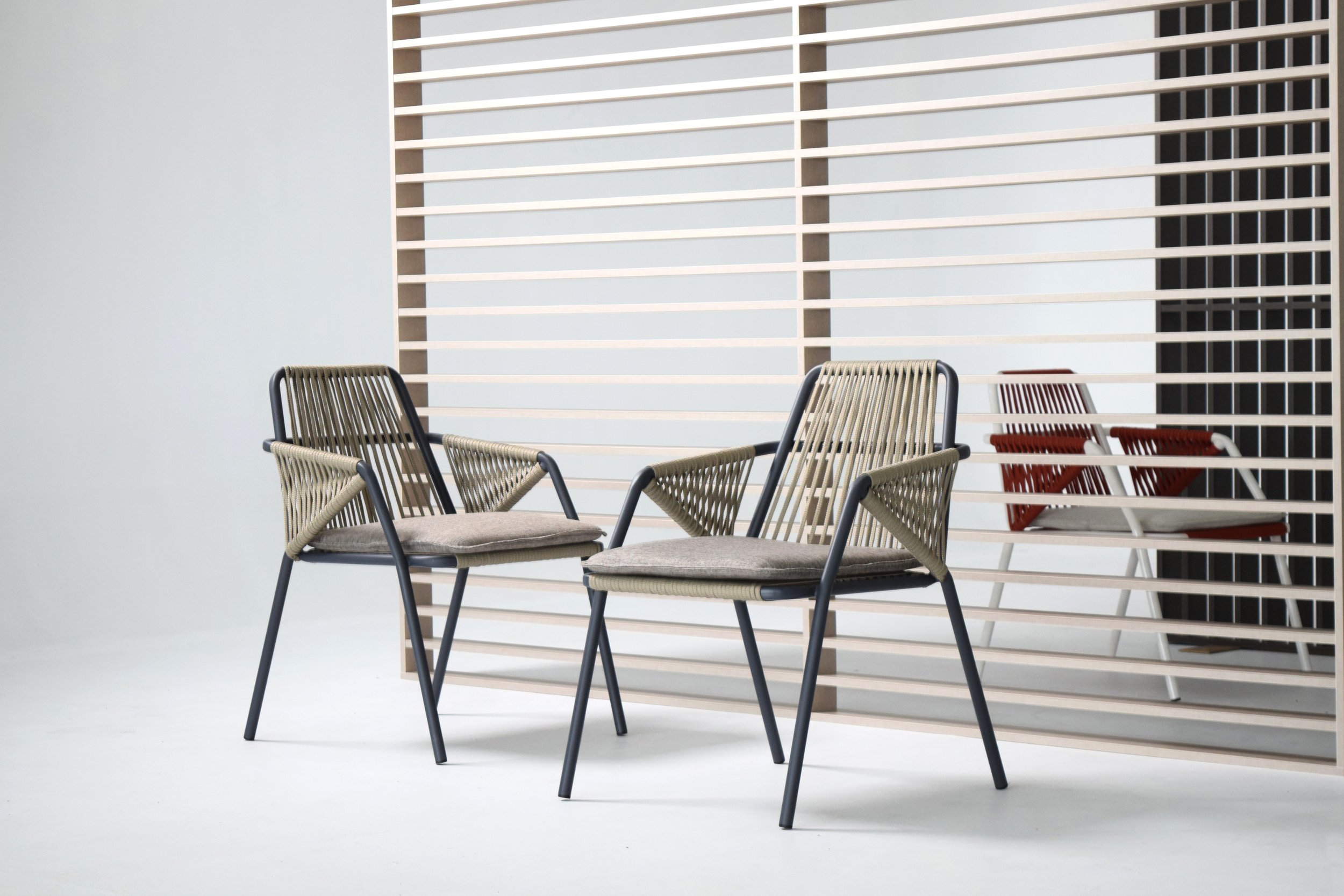 The idea of Antibes comes from the desire to create an outdoor collection capable of making any outdoor space elegant: a contemporary chair that combines two materials, the aluminum structure and the rope covering.