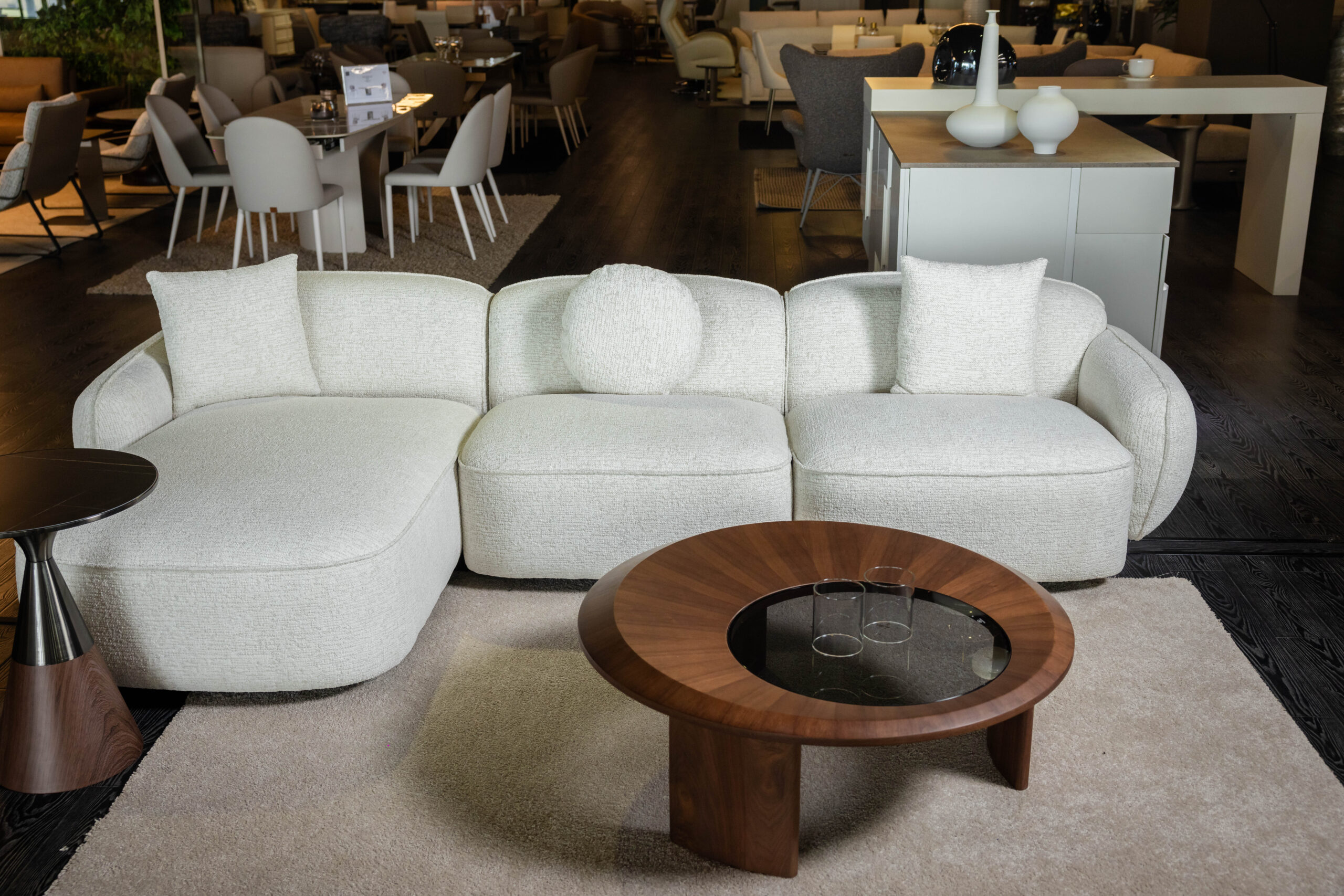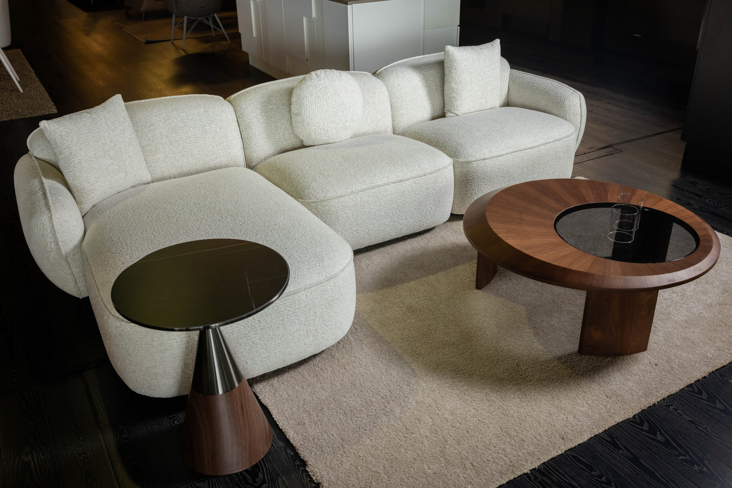 The modular design allows for flexible configurations, adapting effortlessly to different layouts and interior concepts. Whether placed in a spacious living room or a curated lounge area, Celestia enhances the atmosphere with its subtle luxury and distinctive presence.