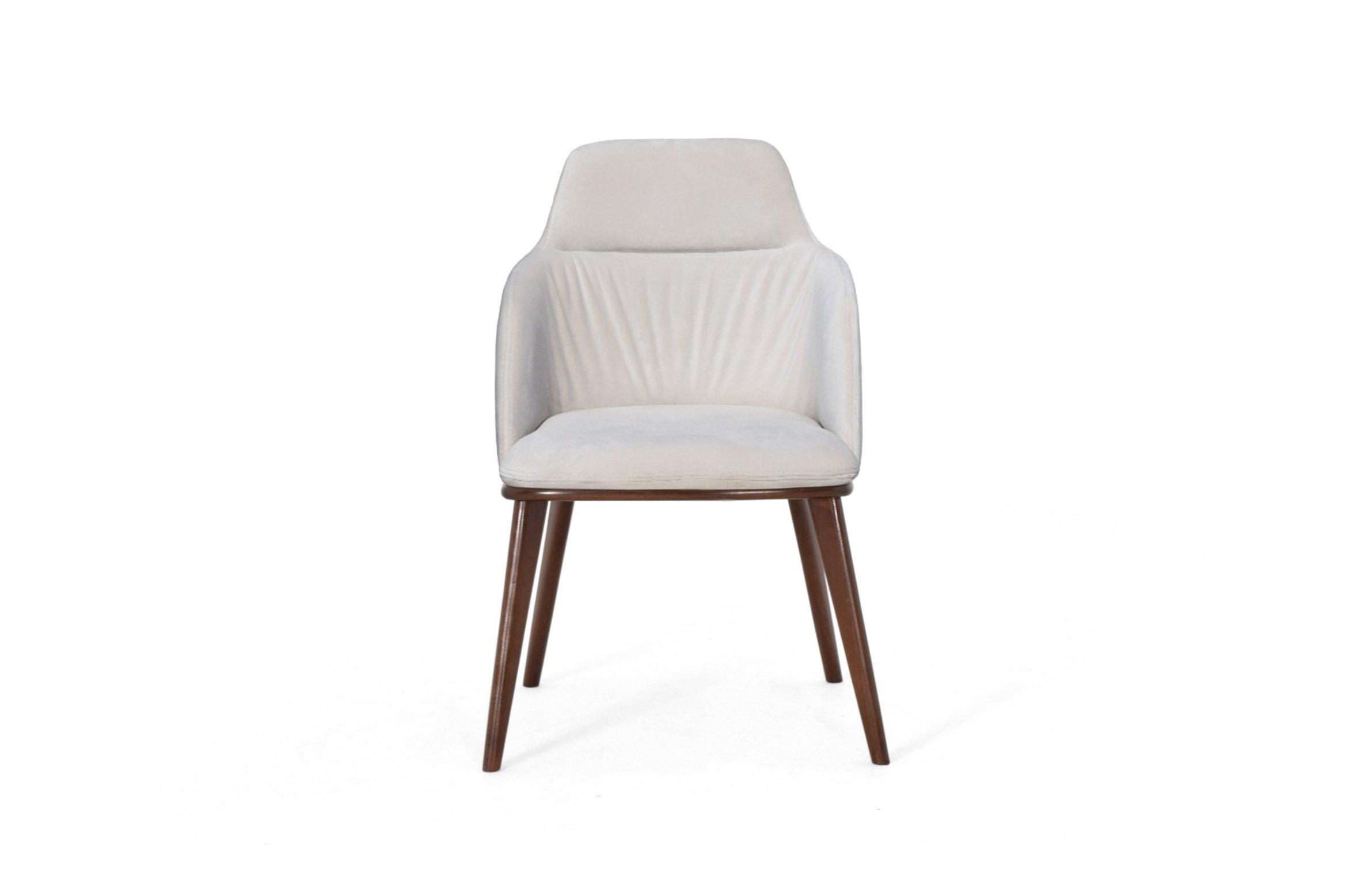 The Cherie dining chair combines elegance and comfort. Its mid-height back and deep armrests offer great support, making it ideal for dining settings. The durable structure features multilayered wood and flexible polyurethane foam, ensuring long-lasting comfort. The seat cushion uses shaped polyurethane and polyester fiber for optimal support. Available in fabric or leather upholstery, it can be customized to suit any aesthetic. The lacquered or painted legs add a sophisticated finish, making this chair perfect for both modern and traditional dining spaces. A timeless, luxurious addition to any upscale establishment.