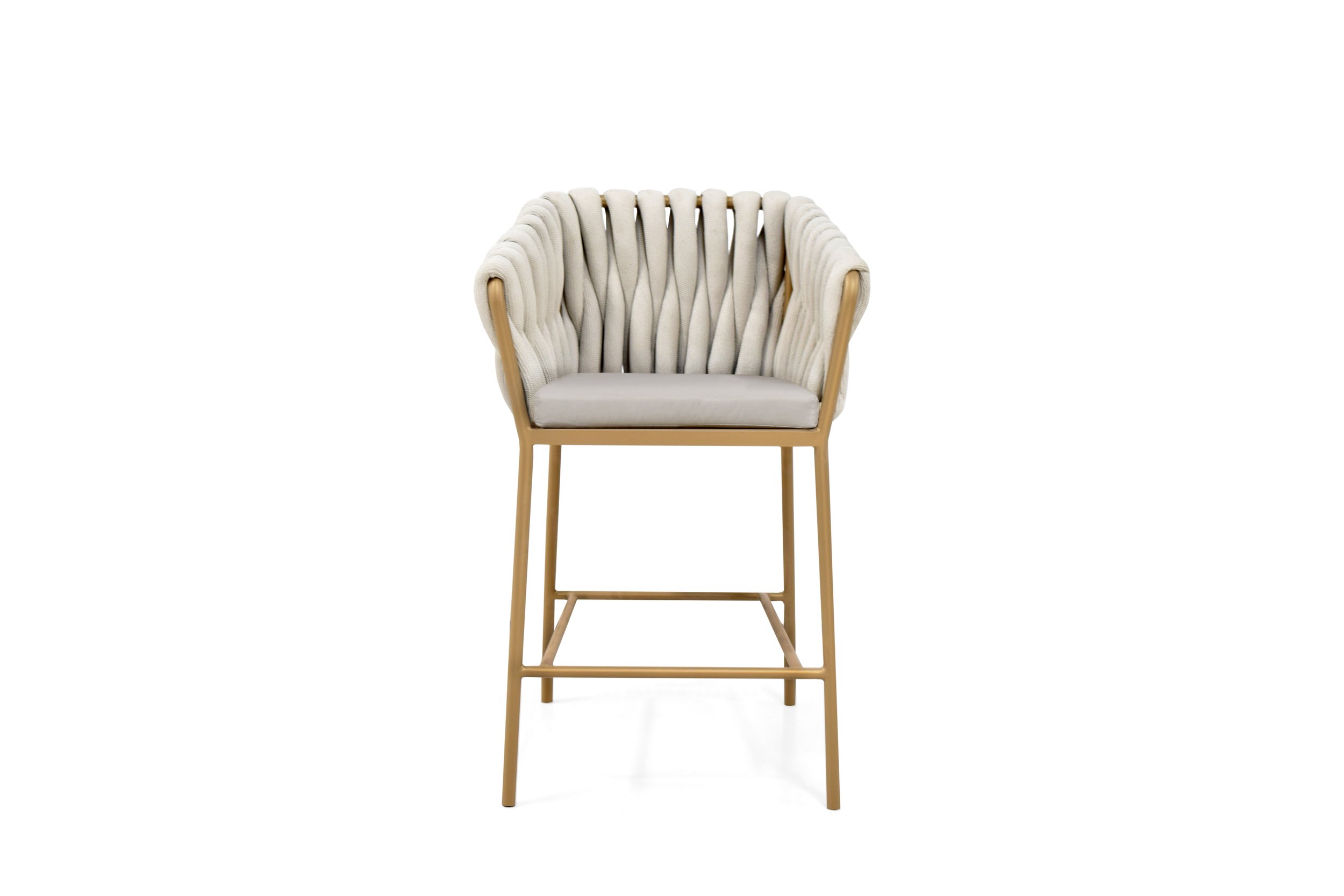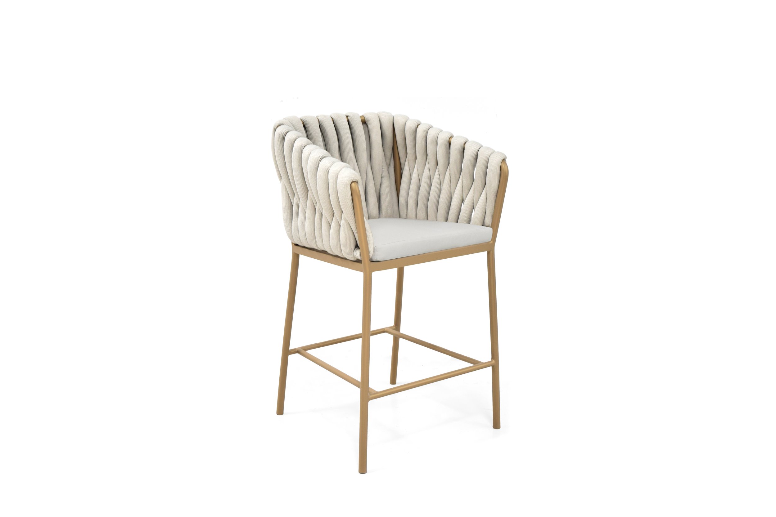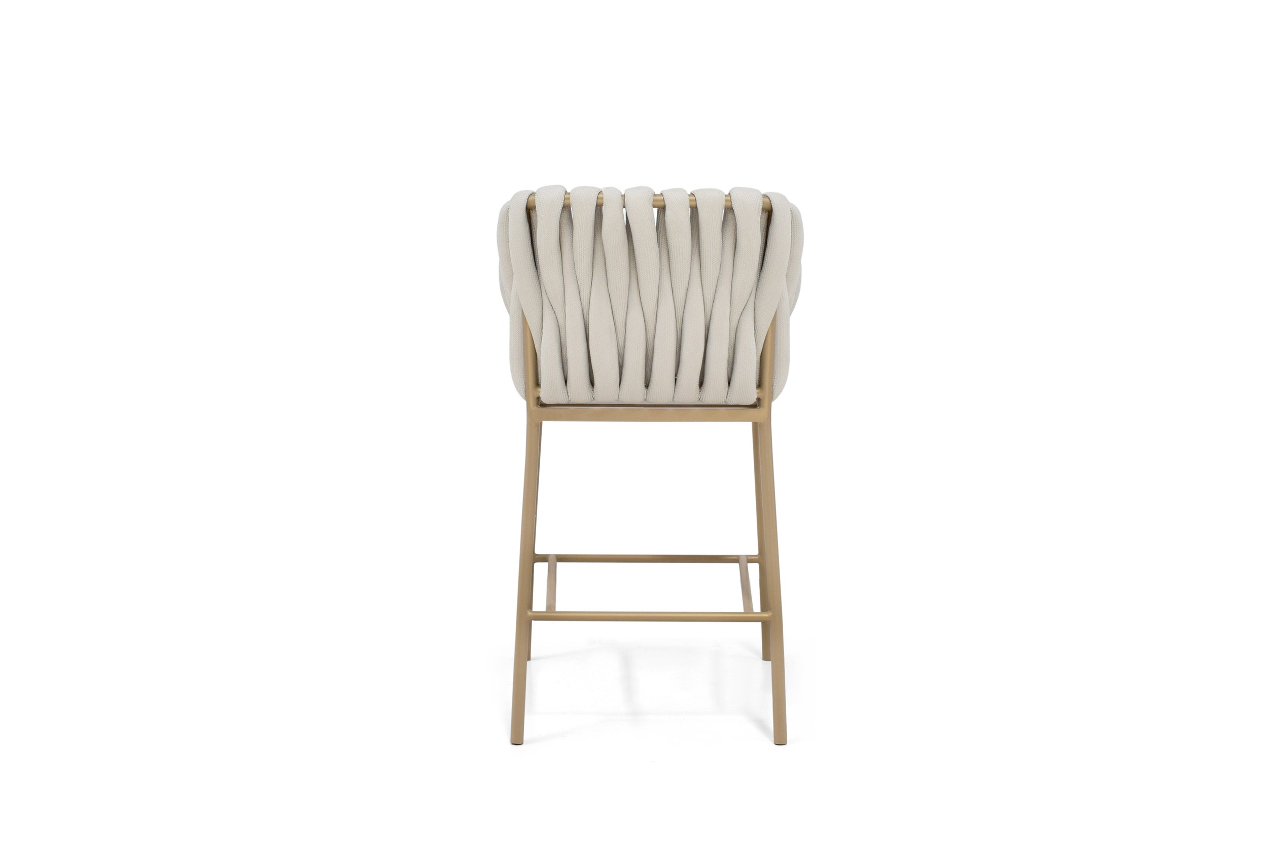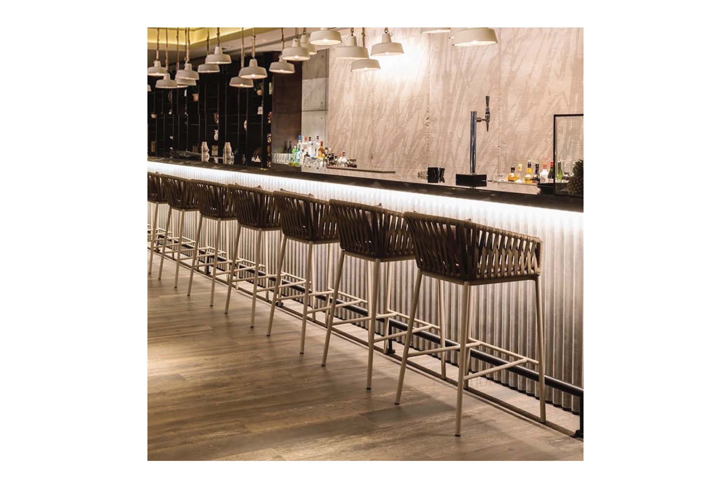 The counter-height Dexter is ideal for a pool-house kitchen counter. The stool’s attractive powdercoated stainless steel sitting shell is upholstered with an extra-large, vertical weave designed especially by Able.