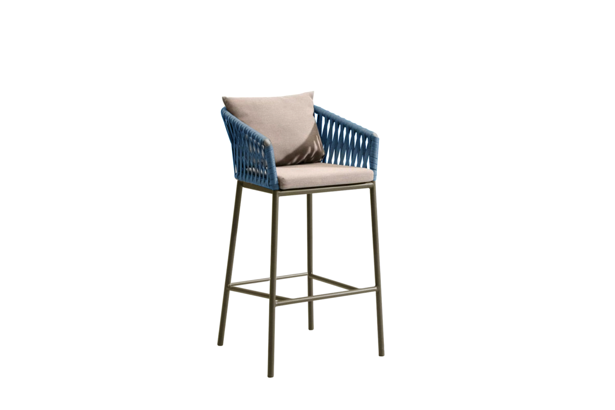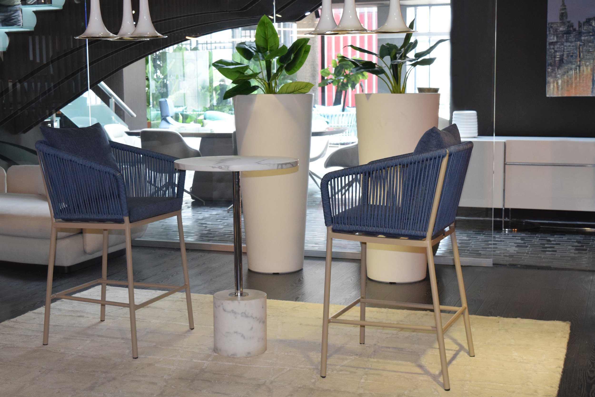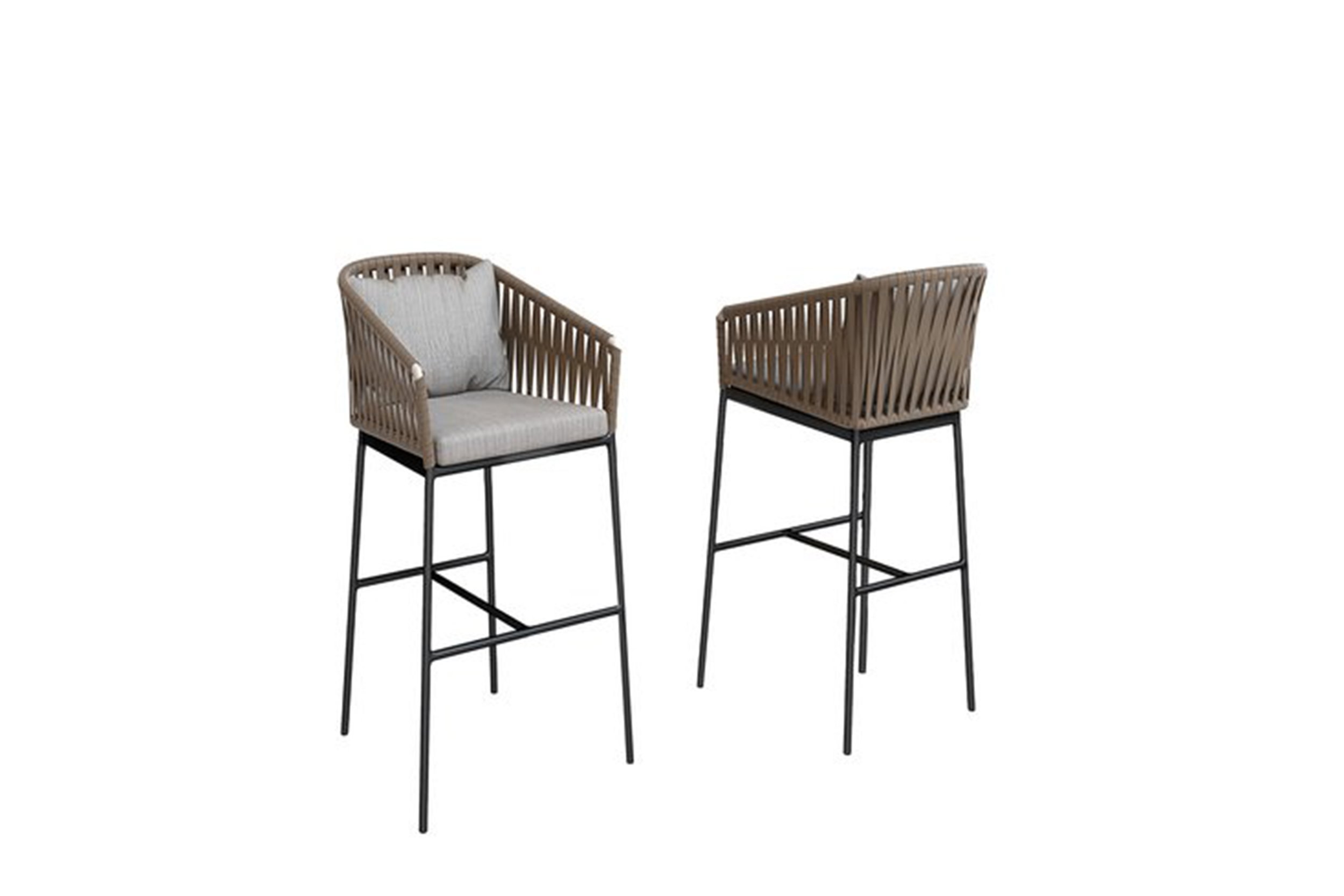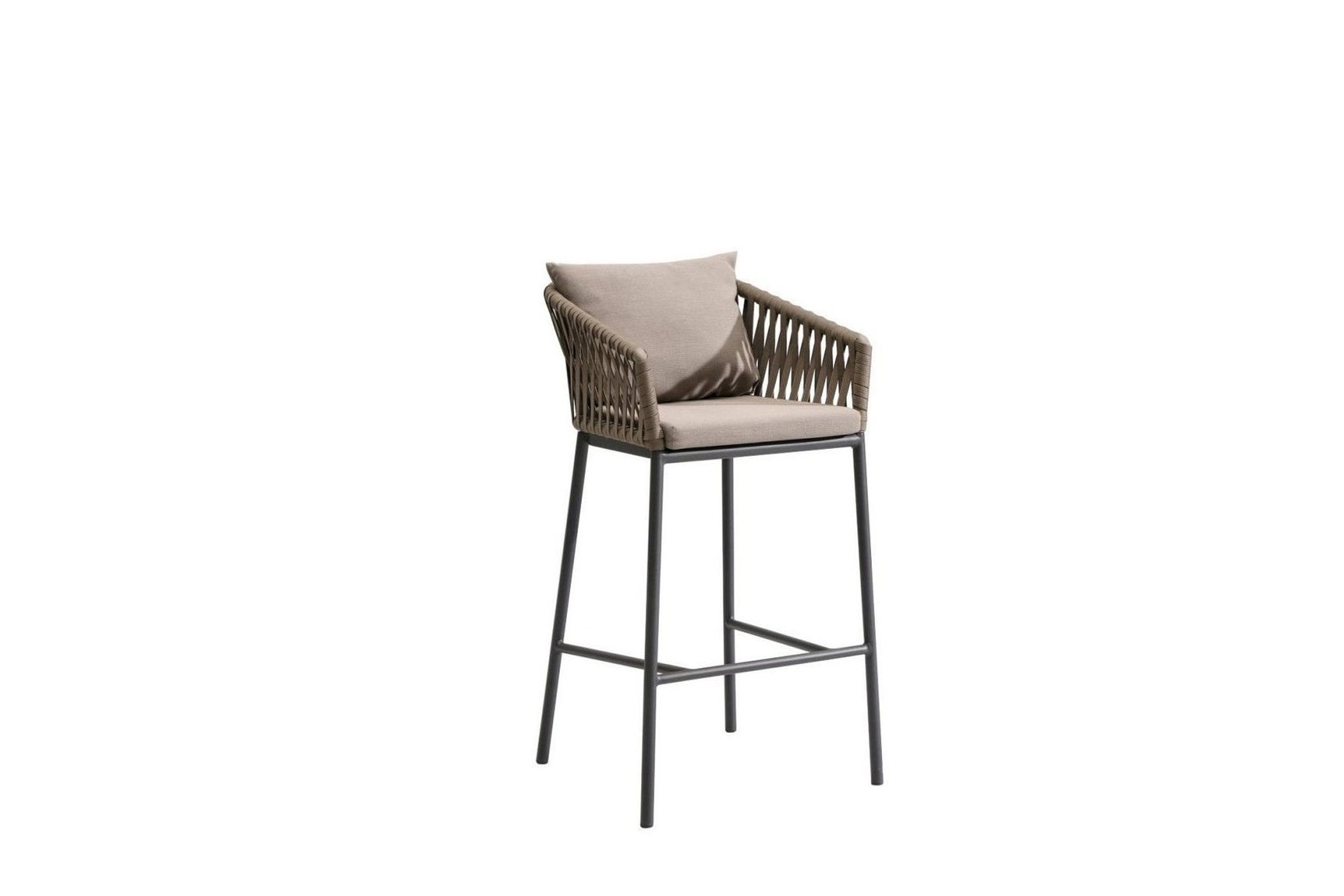 The counter-height Dexter is ideal for a pool-house kitchen counter. The stool’s attractive powdercoated stainless steel sitting shell is upholstered with an extra-large, vertical weave designed especially by Able.