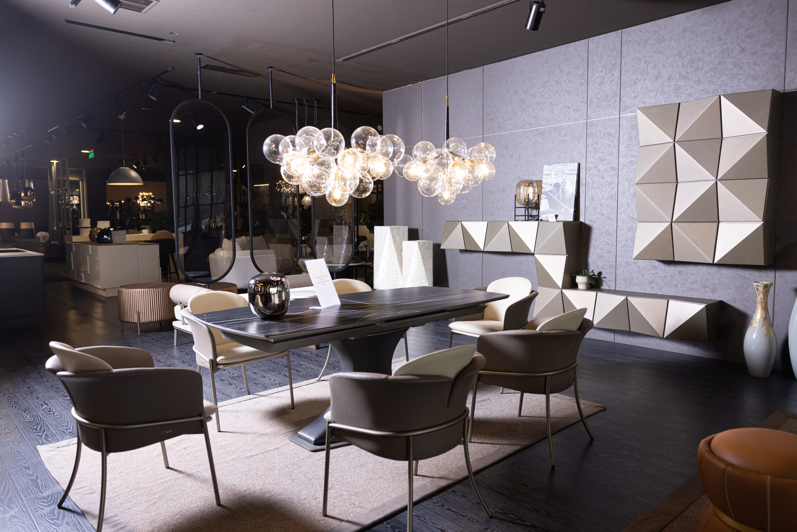 Donique by Able is a modern dining table that combines elegant geometric style with exquisite craftsmanship. Its hourglass resin base supports a rounded rectangular surface top, creating a harmonious and balanced aesthetic. The table features clean lines, curvy leather upholstery, and a seamless opening mechanism, adding functionality and appeal. Extendable to accommodate more guests, Donique is perfect for both small apartments and larger spaces. Available in various finishes, including leather, glass, and ceramic, it can be customized to suit your style. Donique seamlessly integrates into any environment, offering sophistication and timeless design.