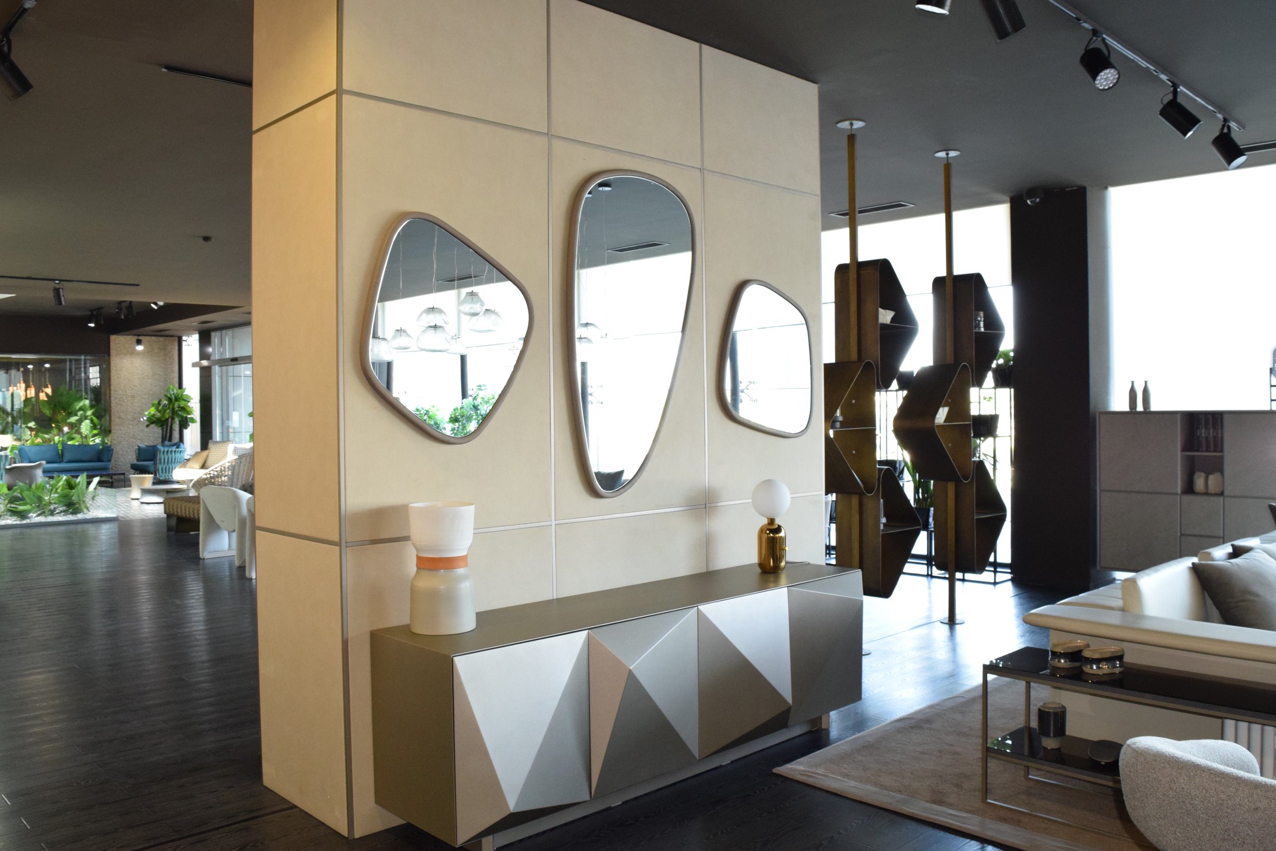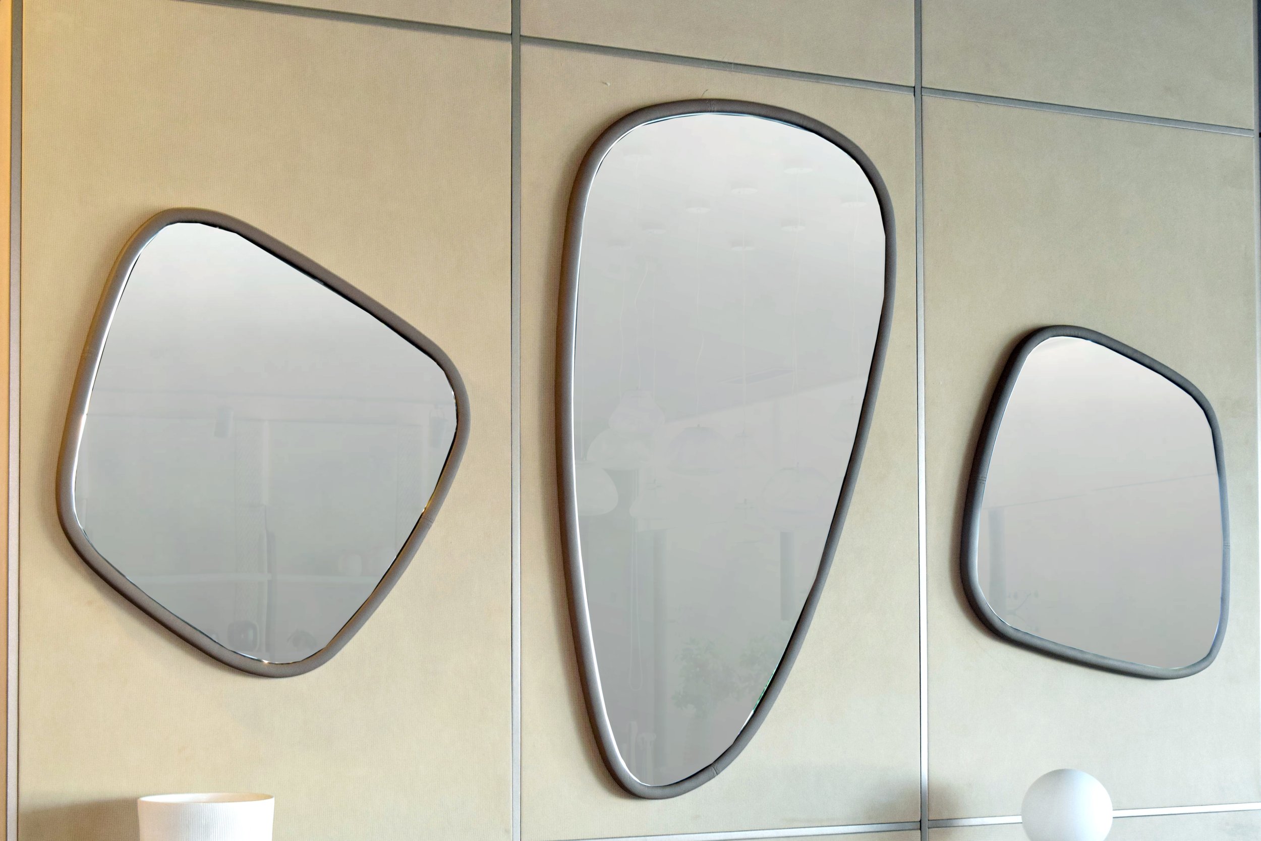 The Elaine Mirror is a stunning metallic piece that adds elegance to any interior. Its oval shape, slightly inclined against the wall, offers contemporary charm, making it ideal for entryways, lounge areas, or above console tables. The precious metallic frame expands gracefully towards the edges, while the reflective surface diffuses ambient light, creating an inviting atmosphere. Crafted with meticulous attention to detail, the Elaine Mirror blends beauty and functionality, making it a perfect complement to both residential and hospitality spaces. Elevate your décor with the Elaine Mirror, a timeless statement of sophistication and craftsmanship.