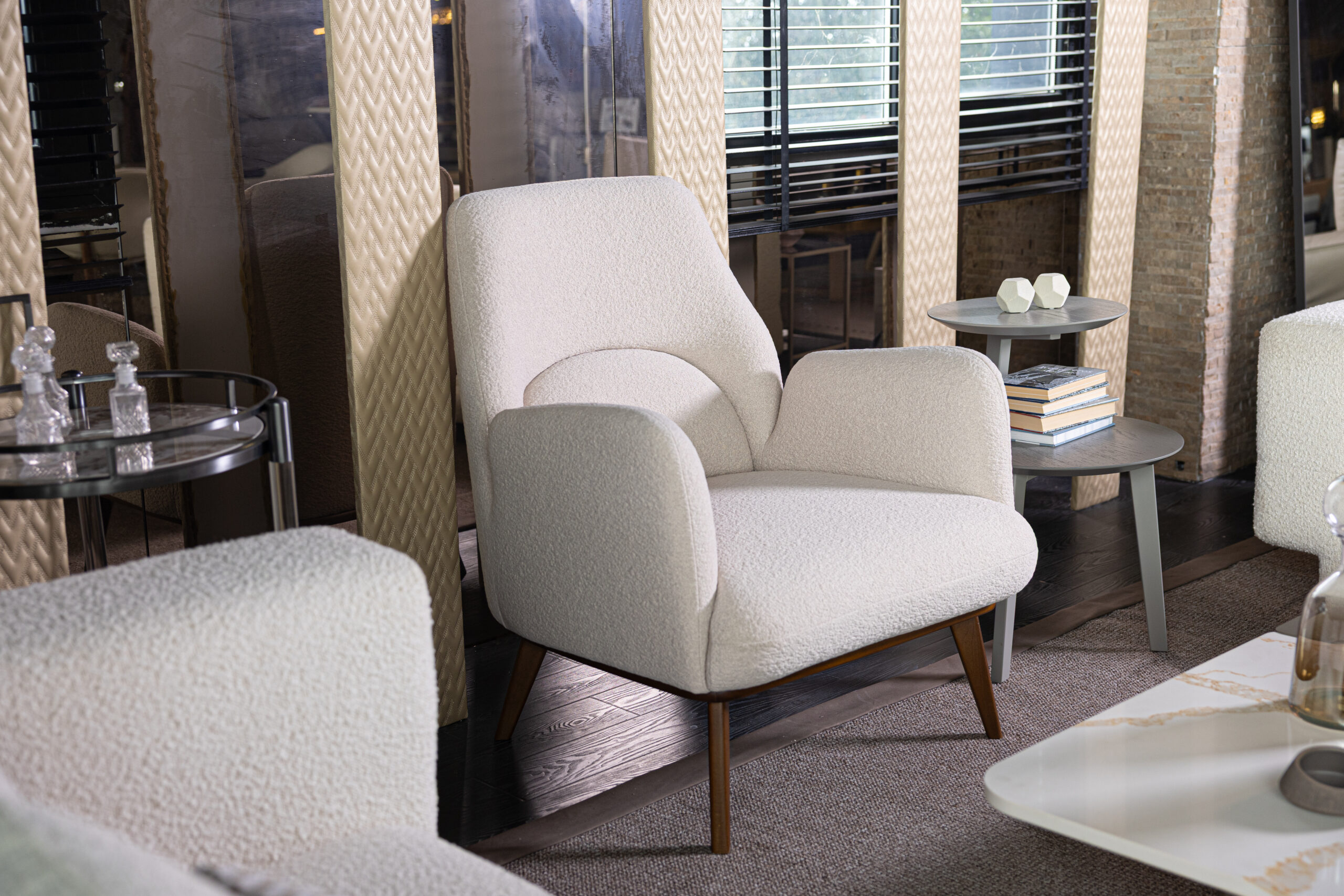 The Lucca Armchair combines timeless design with personalized comfort. Featuring plush corners and deep curves, it offers an intimate seating experience, while the detailed arch profile on the backrest enhances support. Built with a sturdy multilayered wood panel structure, the armchair ensures durability. Its seat cushion, crafted from flexible polyurethane foam and polyester fiber, provides exceptional comfort. With customizable lacquered or painted legs, the Luca Armchair suits any decor. Ideal for residential or commercial spaces, it blends seamlessly into living rooms, offices, and hotel lobbies, offering elegance and style that lasts.