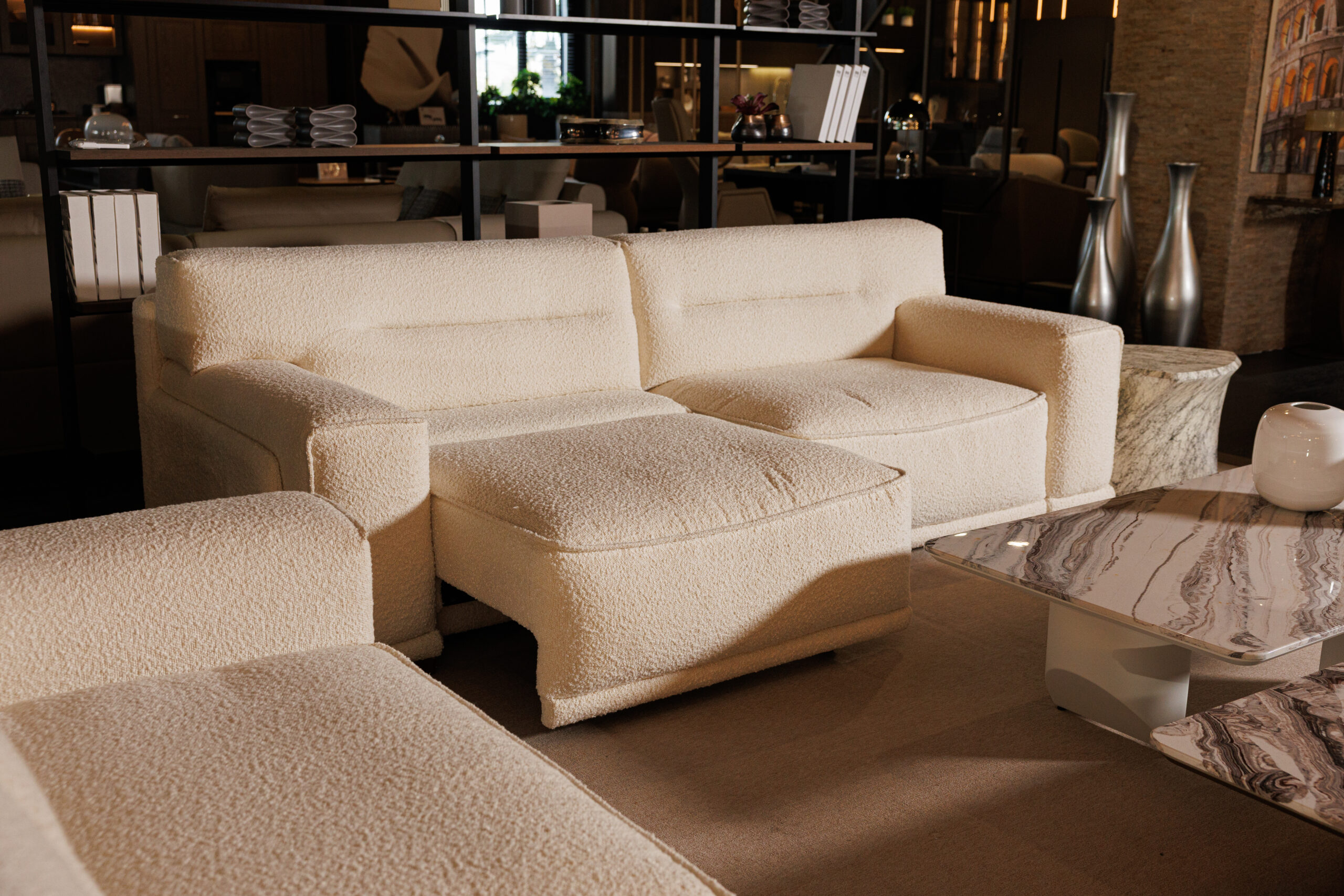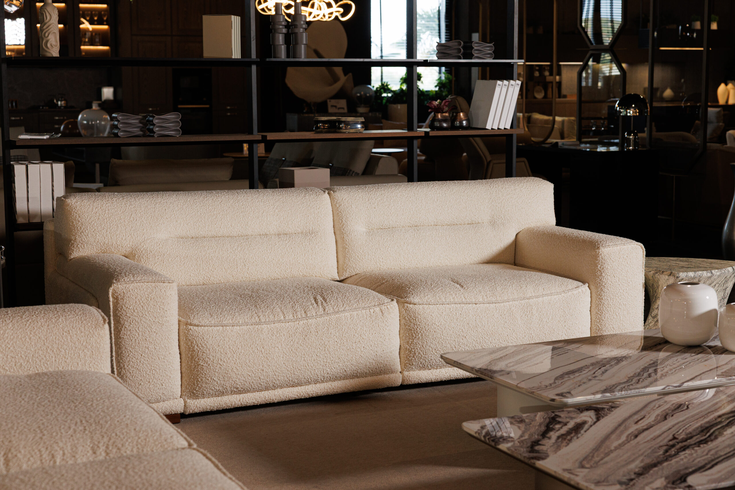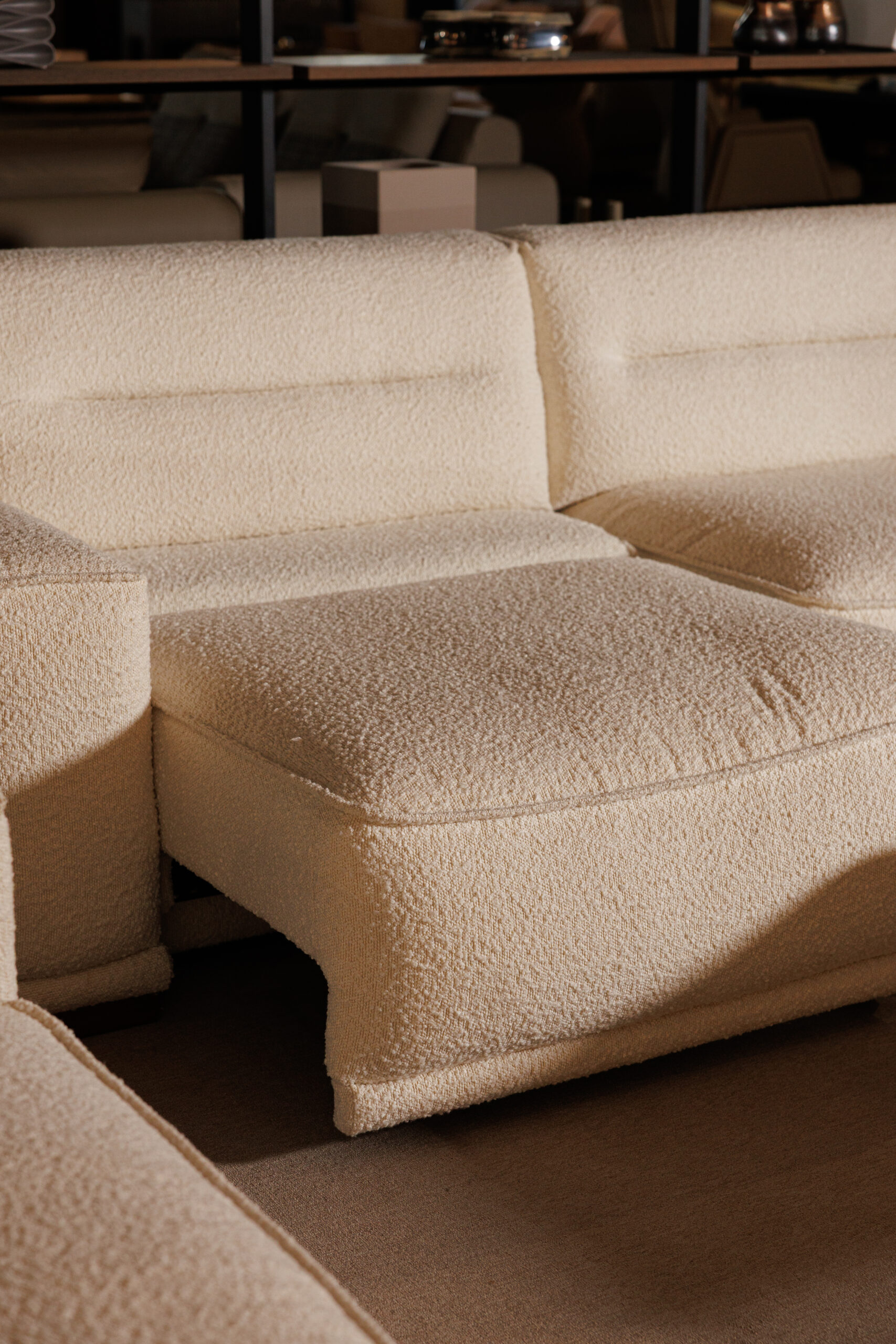 The Meridien Sofa is a striking piece that combines formal rigor, calibrated proportions, and soft geometry. Featuring an adjustable backrest mechanism, it transforms from a horizontal to a vertical position for enhanced comfort and contemporary elegance. Available in linear and corner configurations with a chaise longue, it can be upholstered in fabric or leather to match any style.