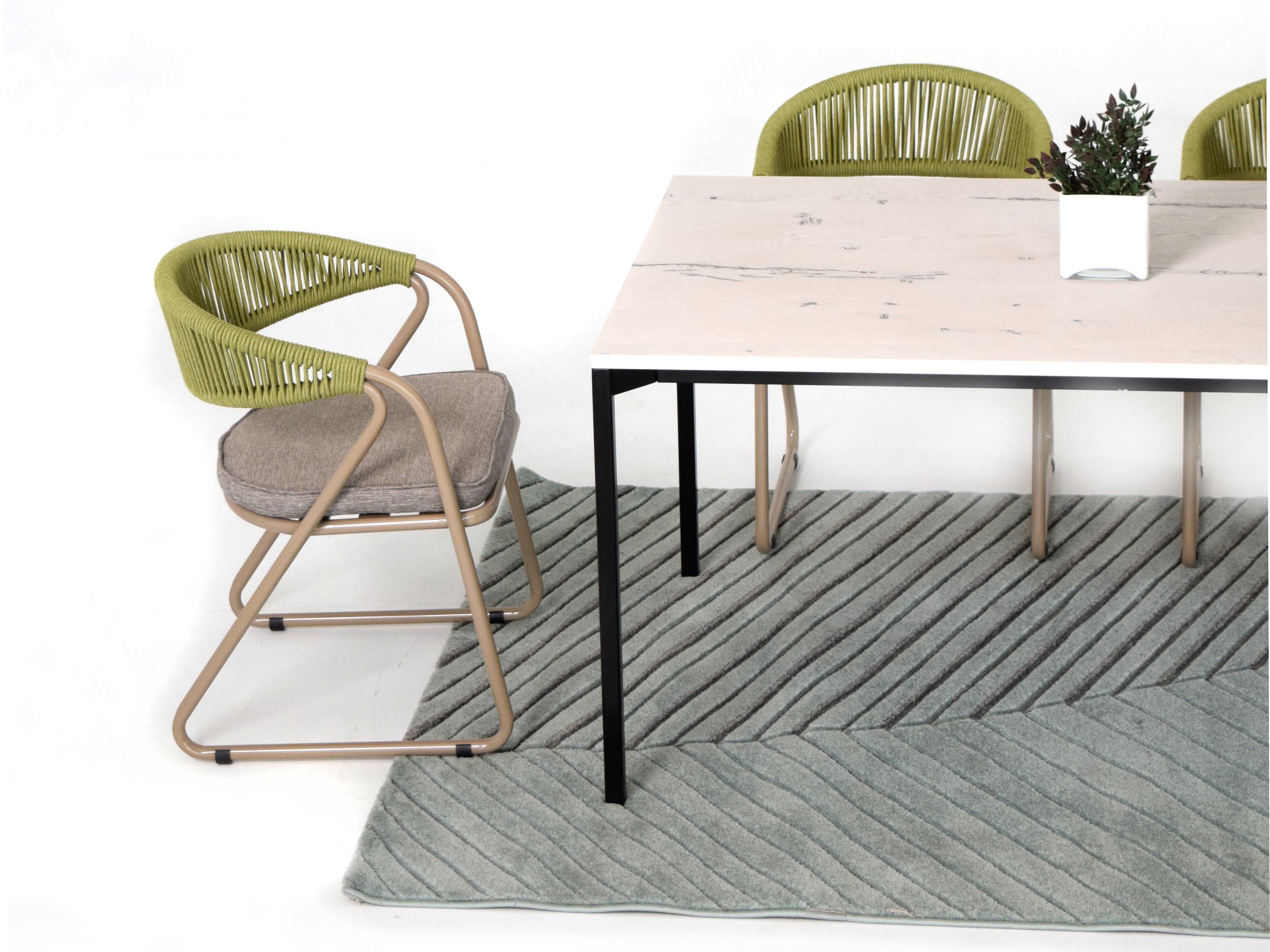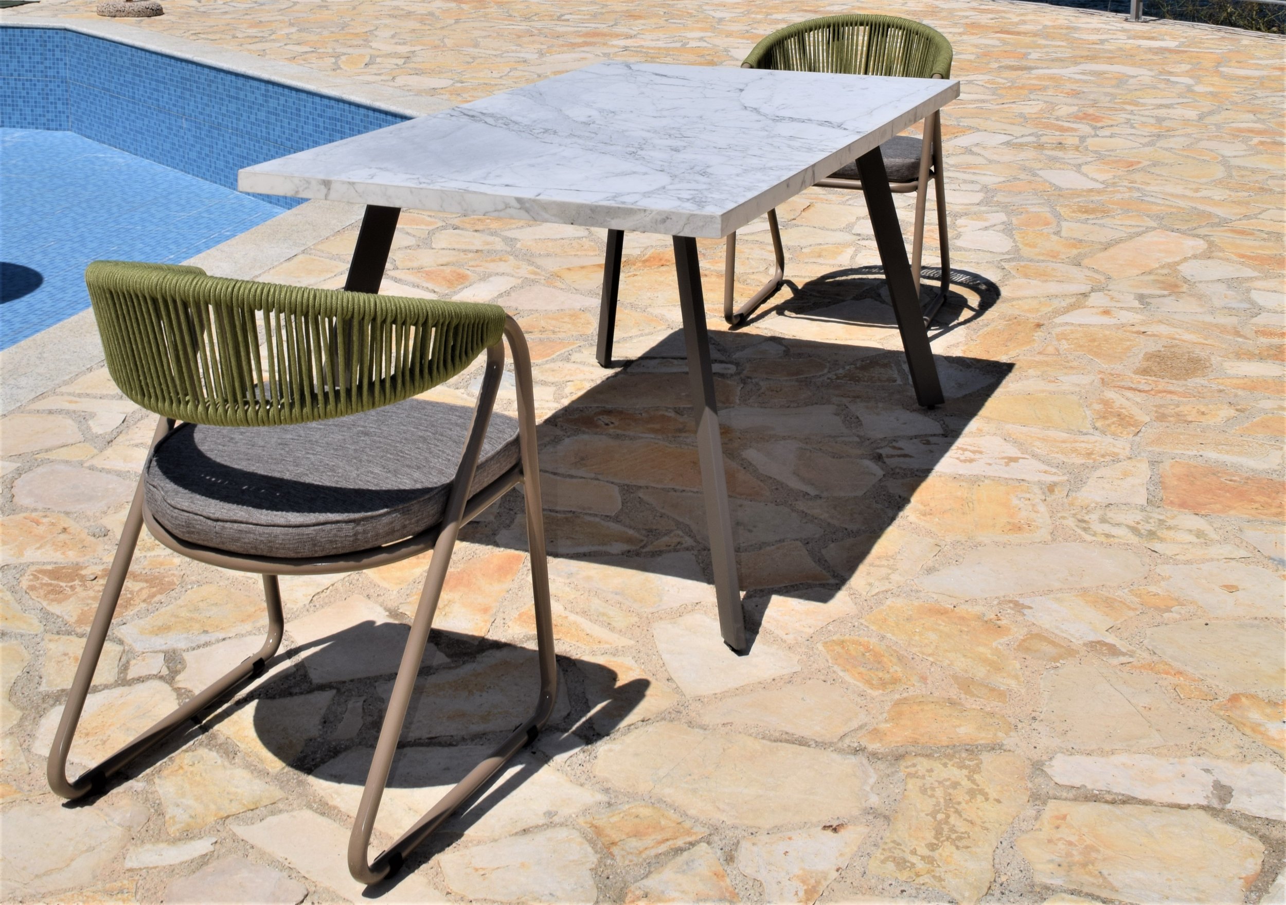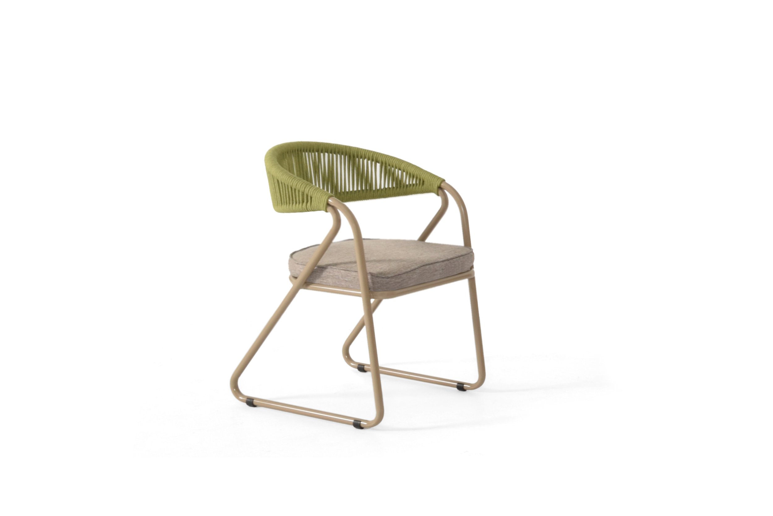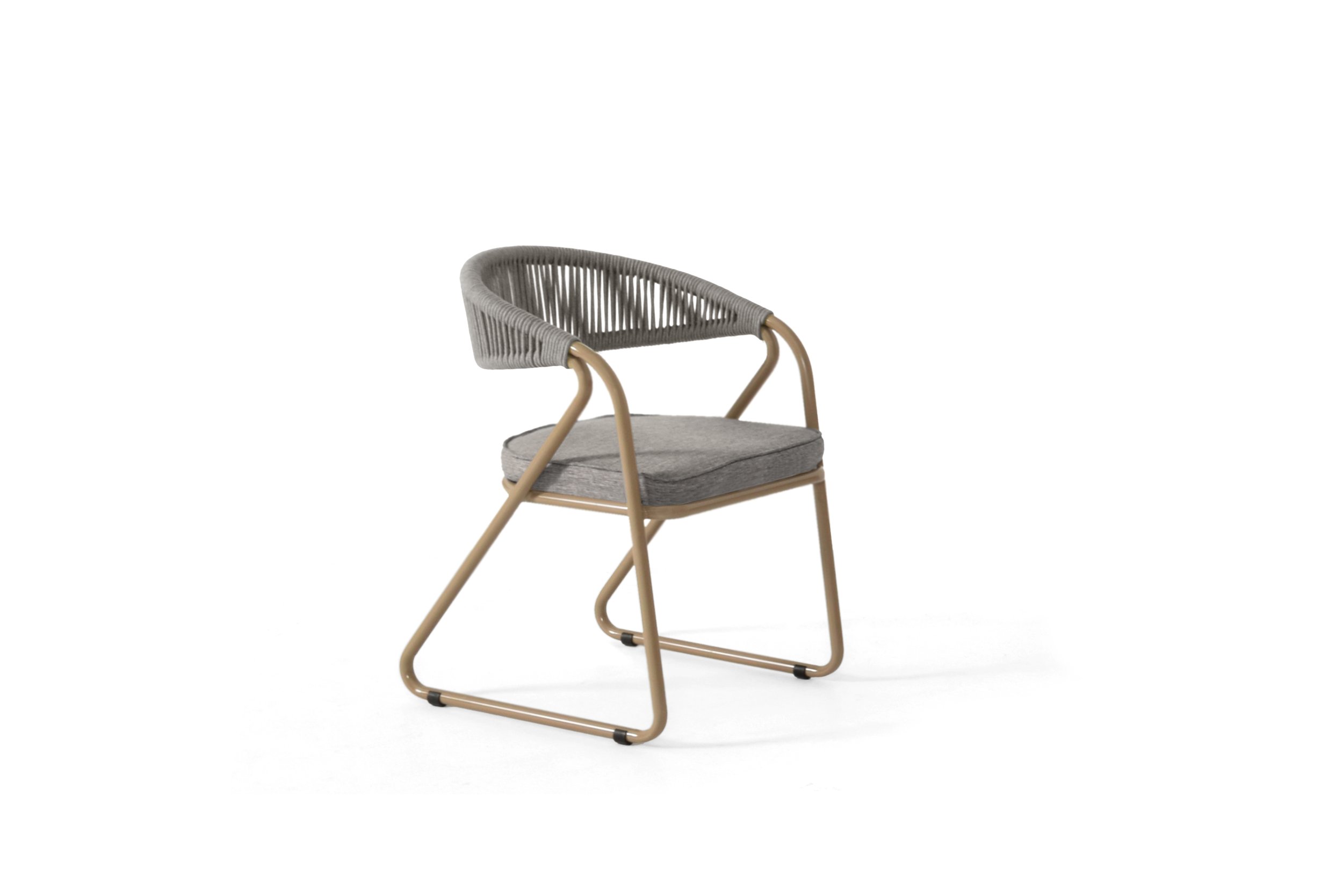 Newport is an outdoor chair that combines perfect ergonomics with the quality of the best outdoor materials: the aluminum structure is finished with a sequence of ropes that wraps the backrest.