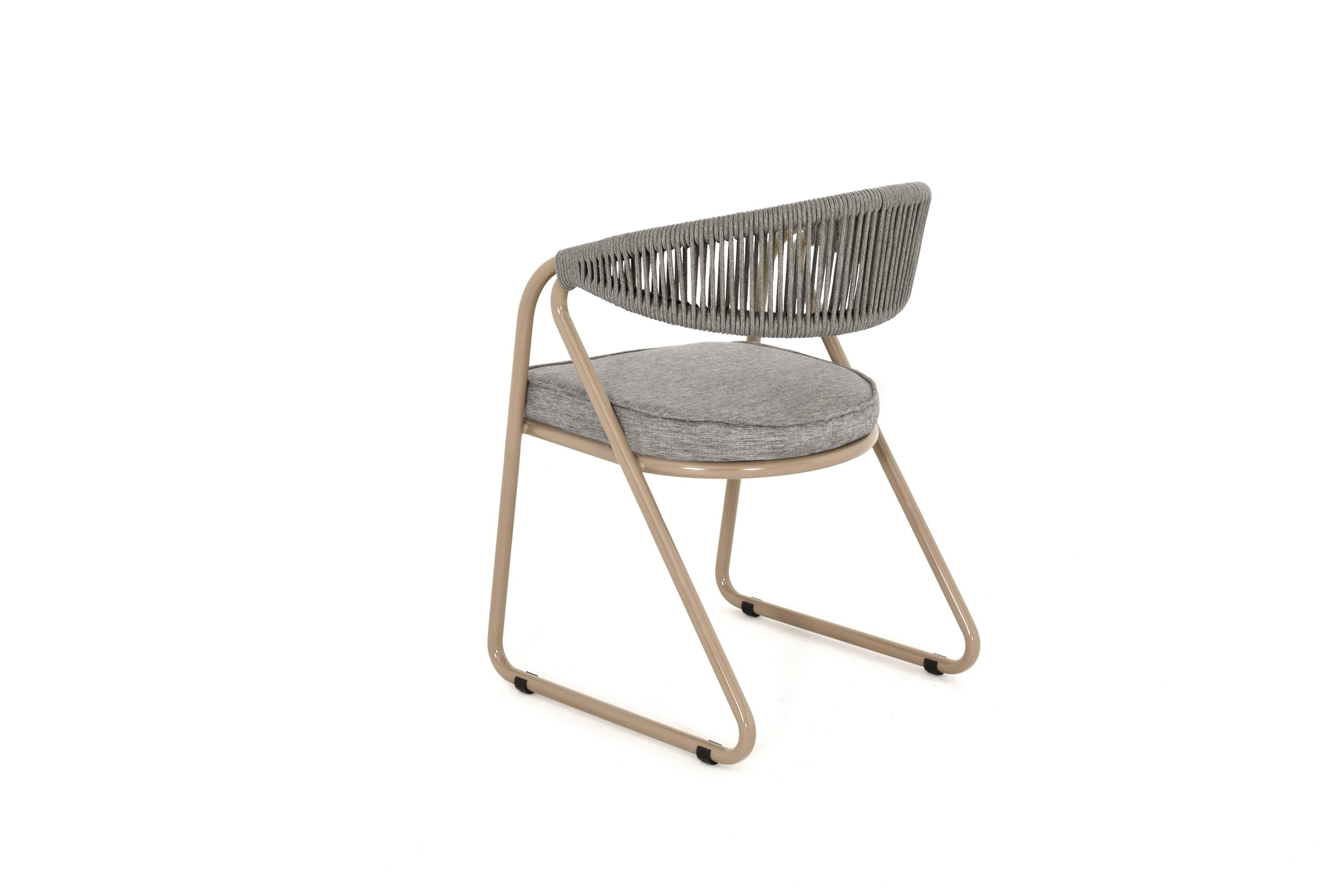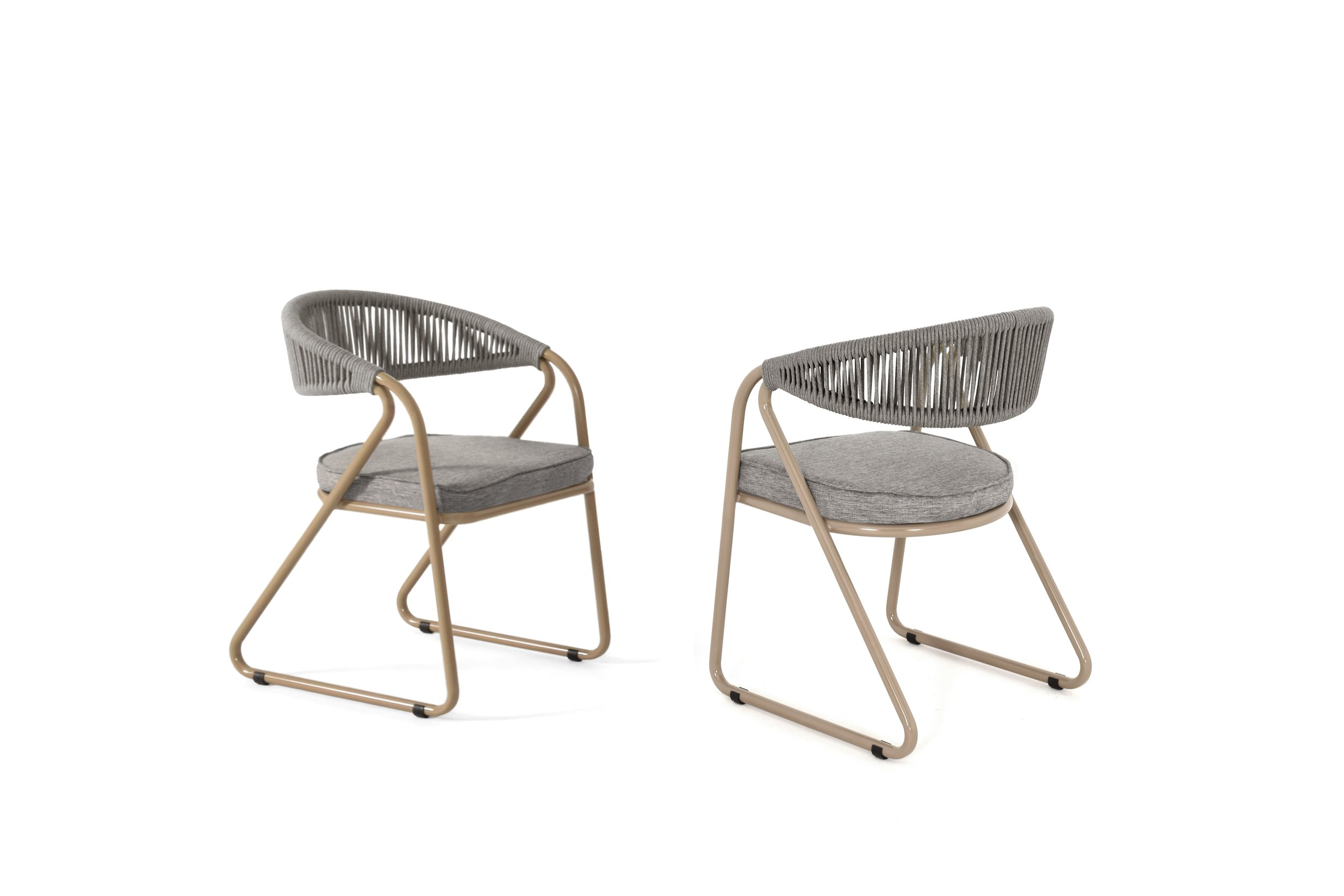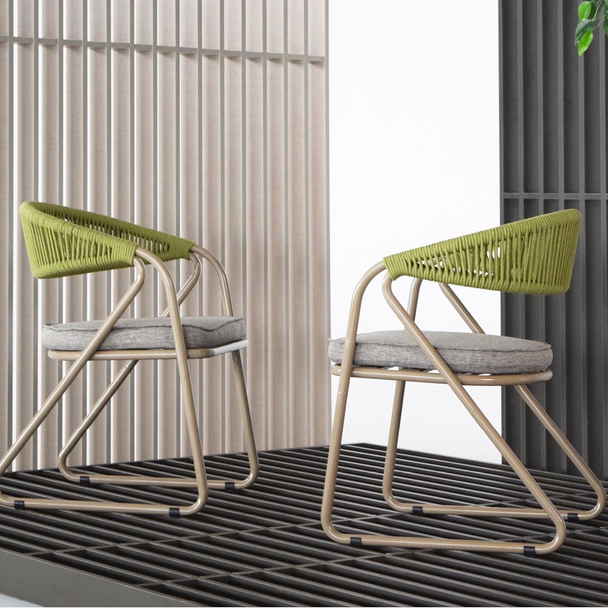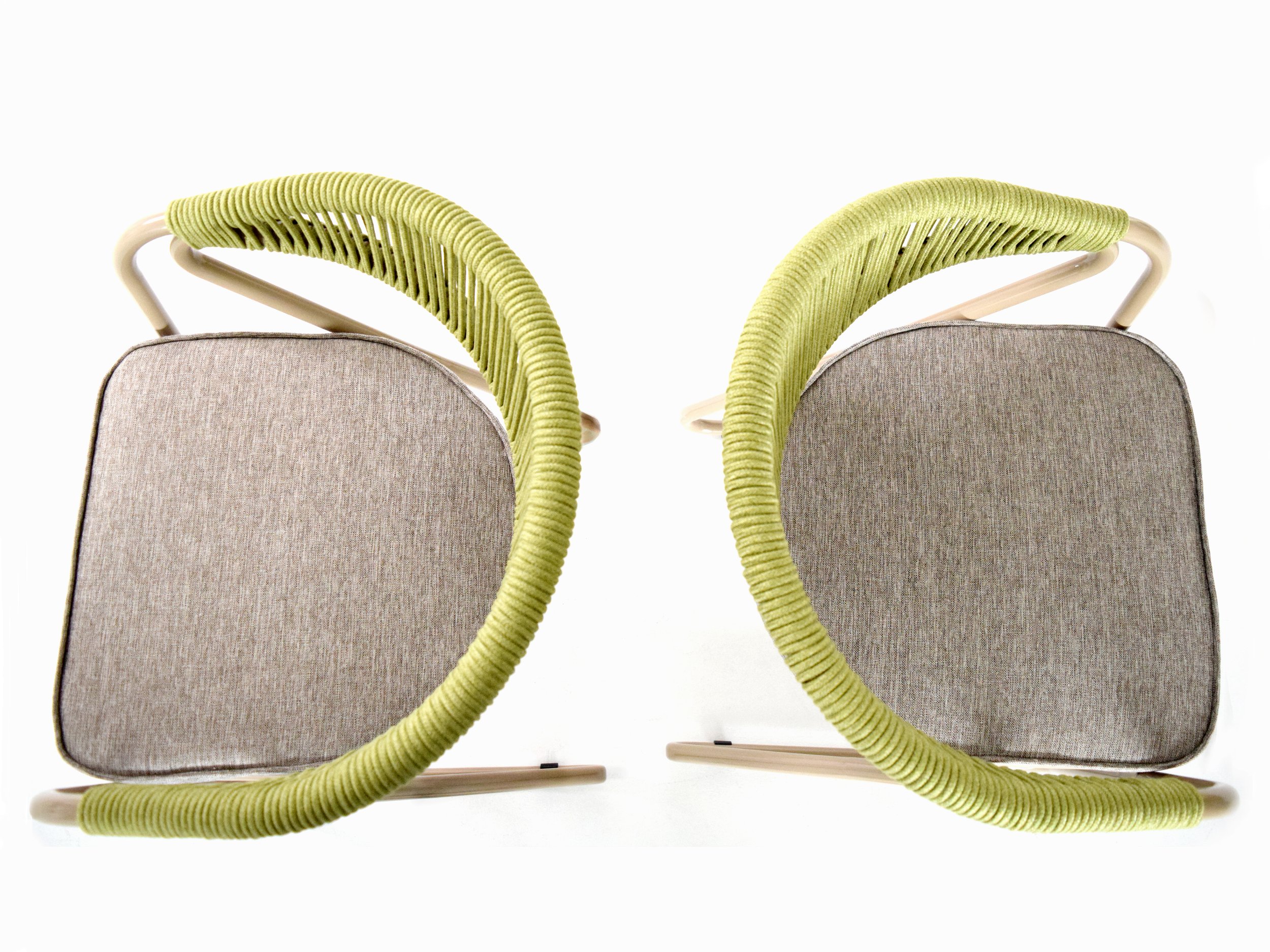 Newport is an outdoor chair that combines perfect ergonomics with the quality of the best outdoor materials: the aluminum structure is finished with a sequence of ropes that wraps the backrest.