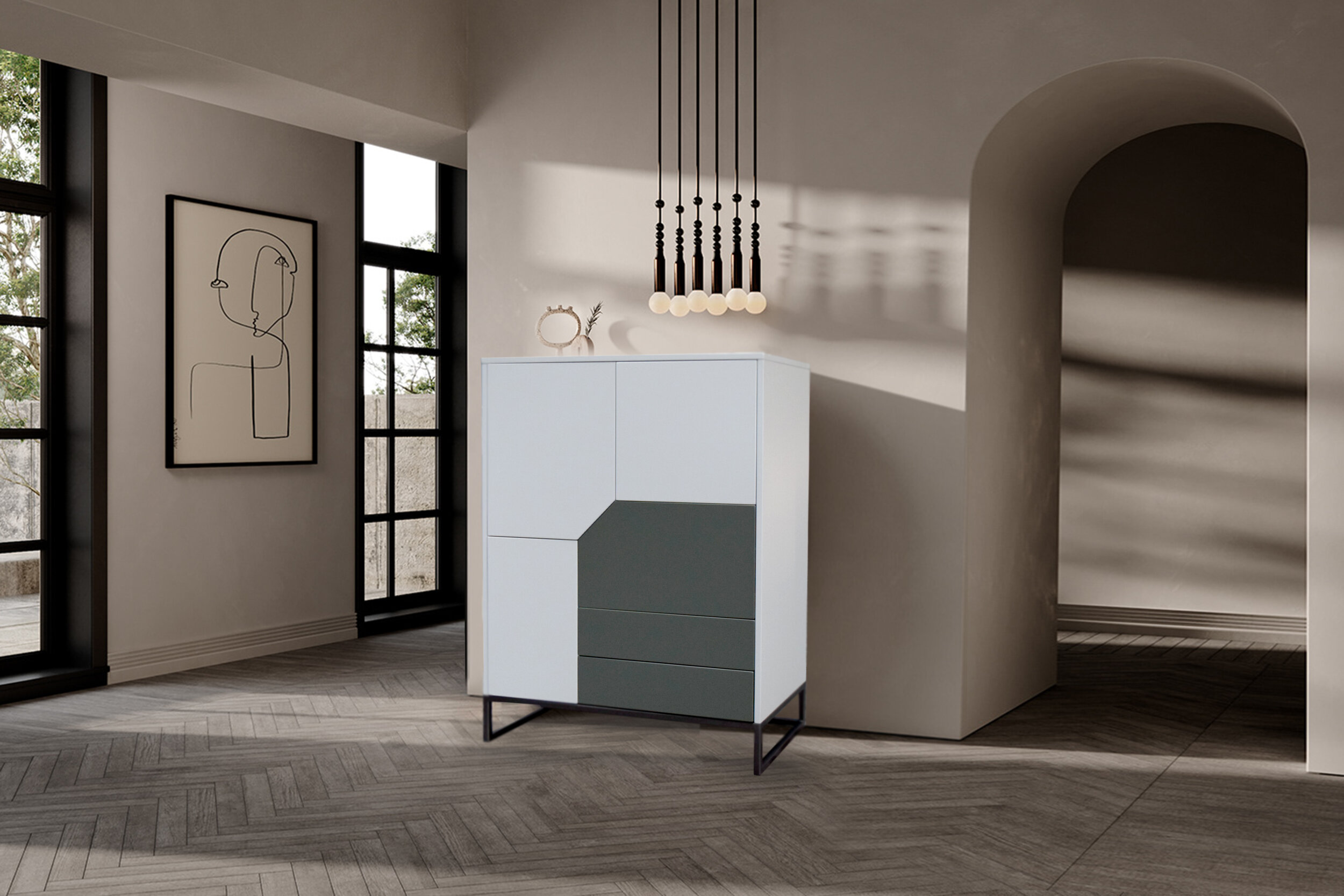 The Noel sideboard by Able combines sleek design and practicality, making it a versatile addition to any living or dining space. Constructed with durable MDF and lacquered MDF fiber wood, it features a customizable metallic structure. Its push-to-open/close fabric-lined drawers offer organized storage, while a tempered glass shelf showcases luxurious objects. Designed to complement other Able products, the Noel sideboard seamlessly fits in corporate, hospitality, or residential spaces, creating a cohesive and elegant atmosphere. Able’s design philosophy blends tradition with modern aesthetics, ensuring timeless quality and functionality.