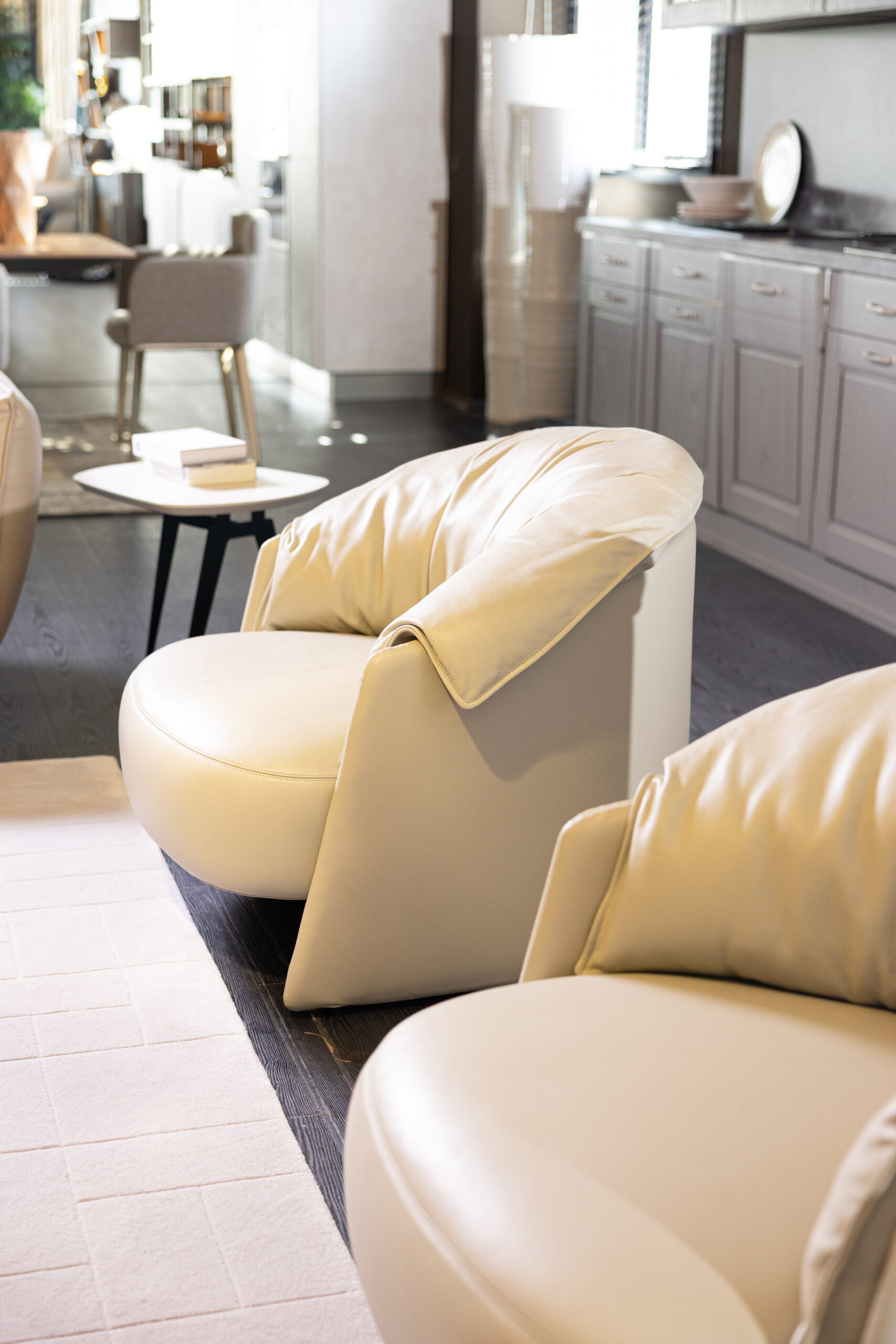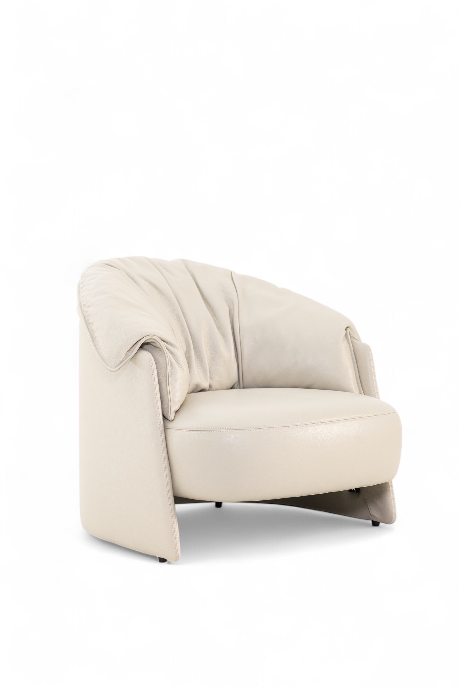 With a design that feels both inviting and elevated, Noy Armchair captures the essence of contemporary luxury. Wrapped in supple leather, its surface offers a tactile depth that speaks to refined craftsmanship. The softly draped backrest contrasts beautifully with its sculptural curves, balancing relaxed comfort with architectural presence. Its rounded form creates an intimate seating experience, while still embodying a sense of modern sophistication. More than just a functional piece, it brings an aura of quite elegance that seamlessly elevates any interior setting.