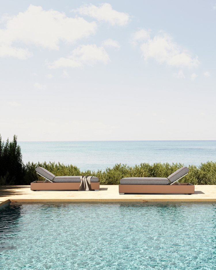 Riviera is a leather-covered sun lounger with an aluminum frame that can withstand the outdoors summer environment. All-weather foam is used to fill cushions; a cutting-edge, highly effective foam created for outdoor uses. The Riviera lounger fits to any exterior and is built with comfort and toughness in mind. ‎