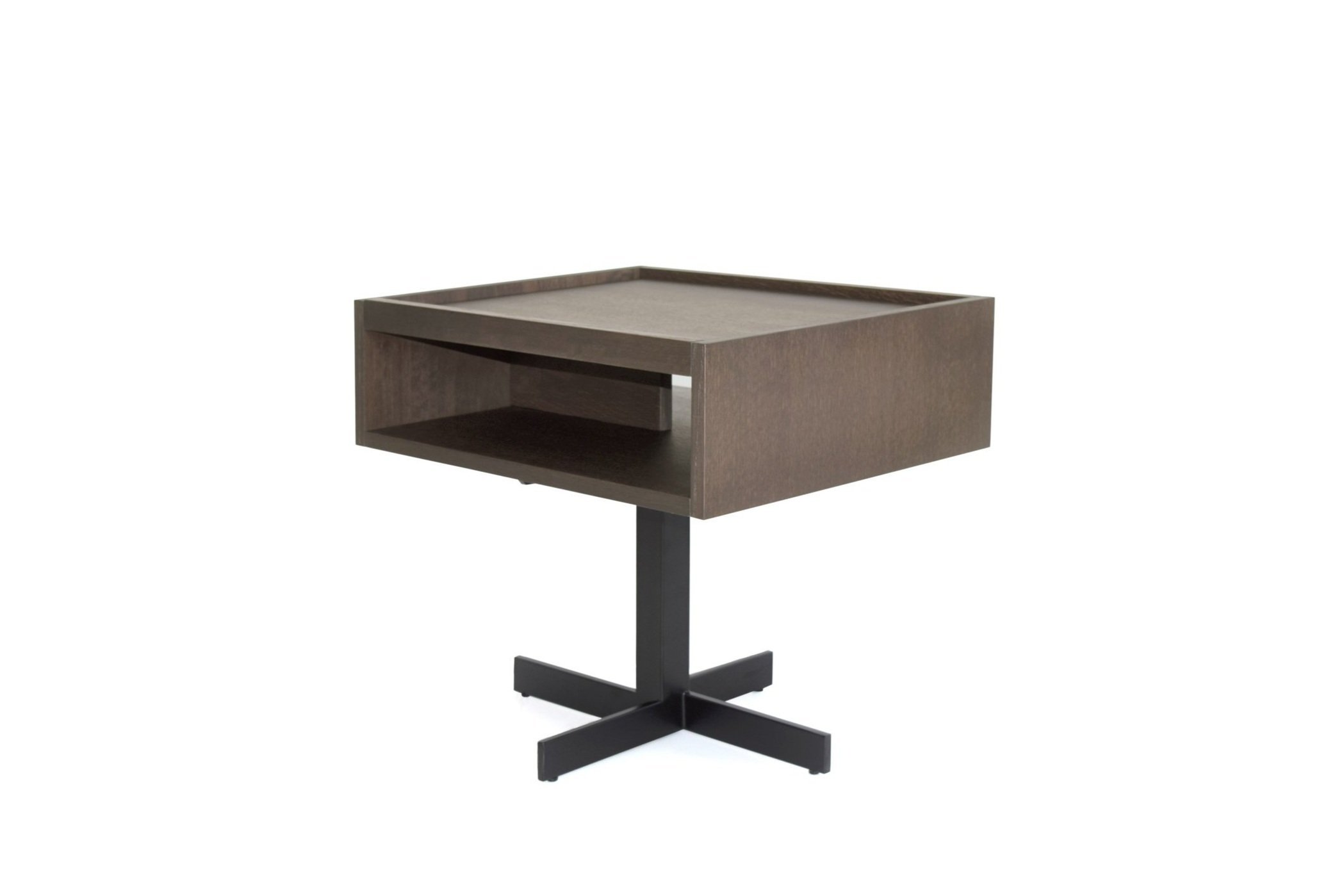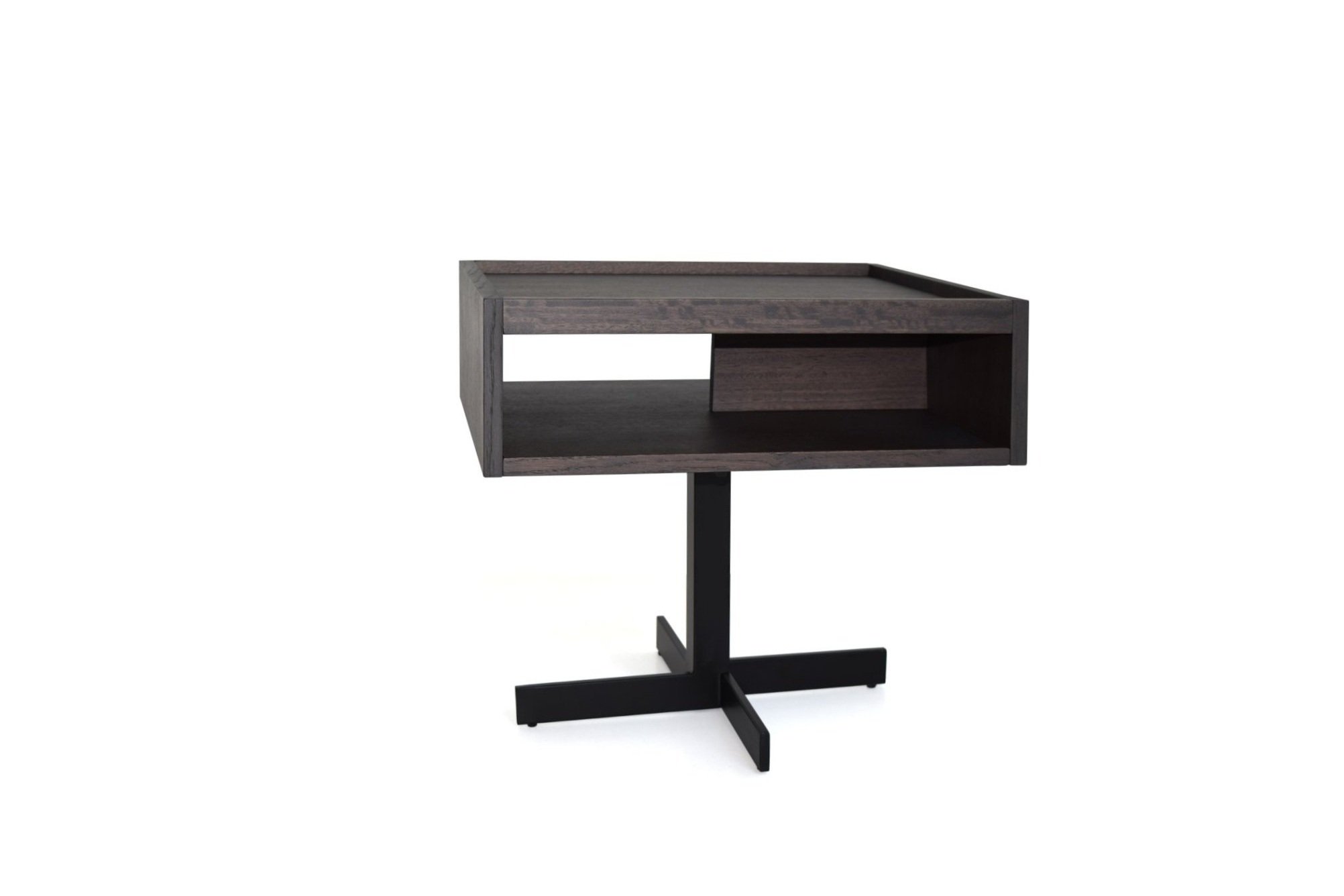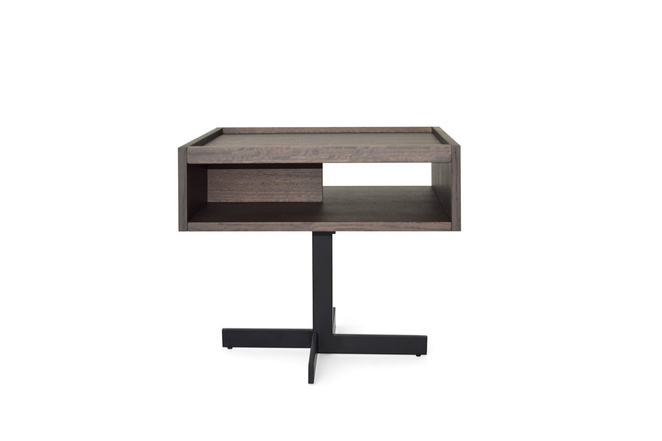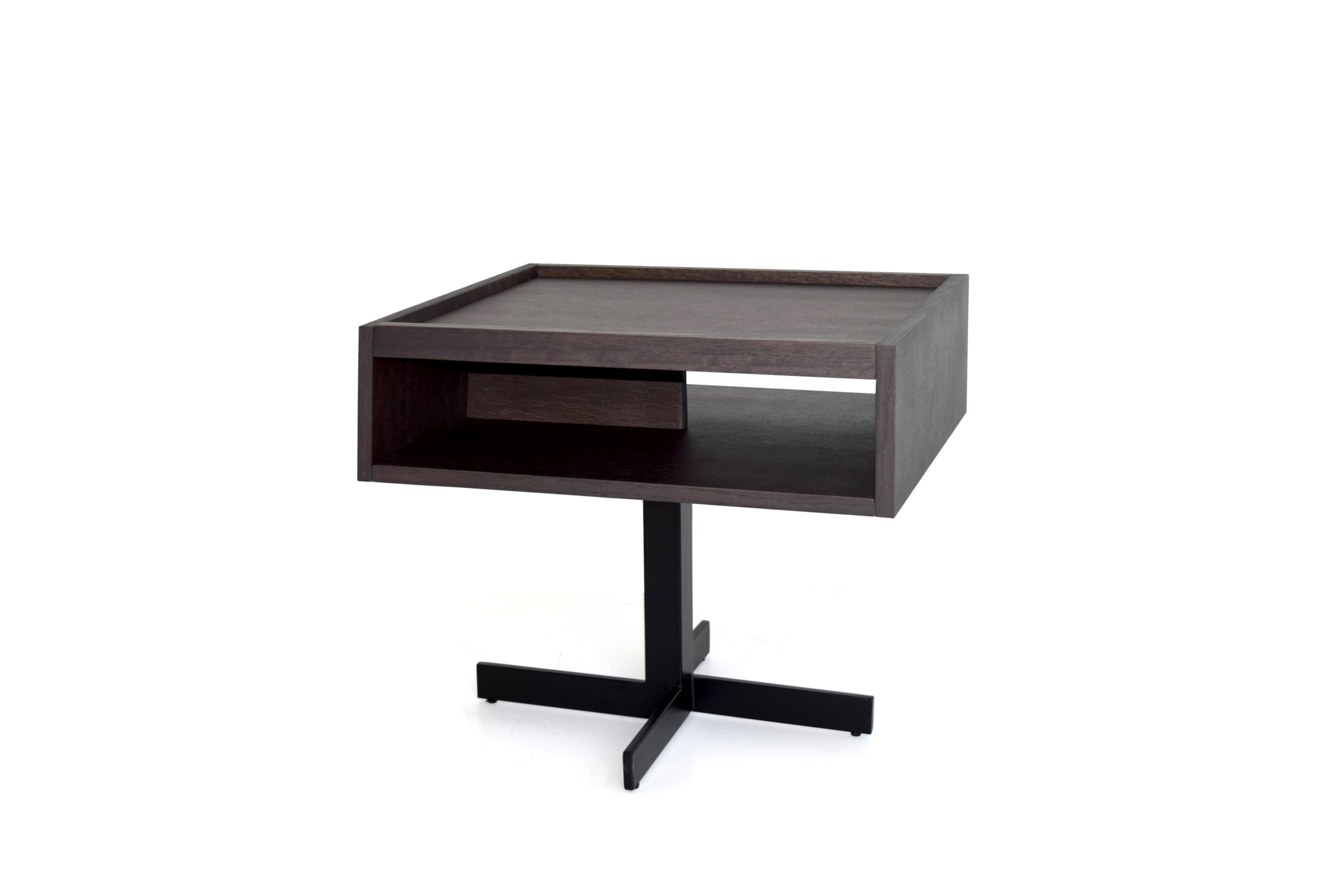 The Roma bedside table by Able combines timeless design with practicality. Its solid wood frame, top, and drawers are complemented by solid black metal accents and handles. The base features bronze-finished metal, enhancing its elegant look. Roma offers customization options, including a Moka lacquered oak structure with a glossy Clay top or matte lacquered Clay. With versatile drawers and a sleek design, it fits perfectly between sofas or beds, providing convenient storage. Available in various finishes, the Roma bedside table exemplifies Able’s commitment to quality craftsmanship and adds sophistication to any interior.
