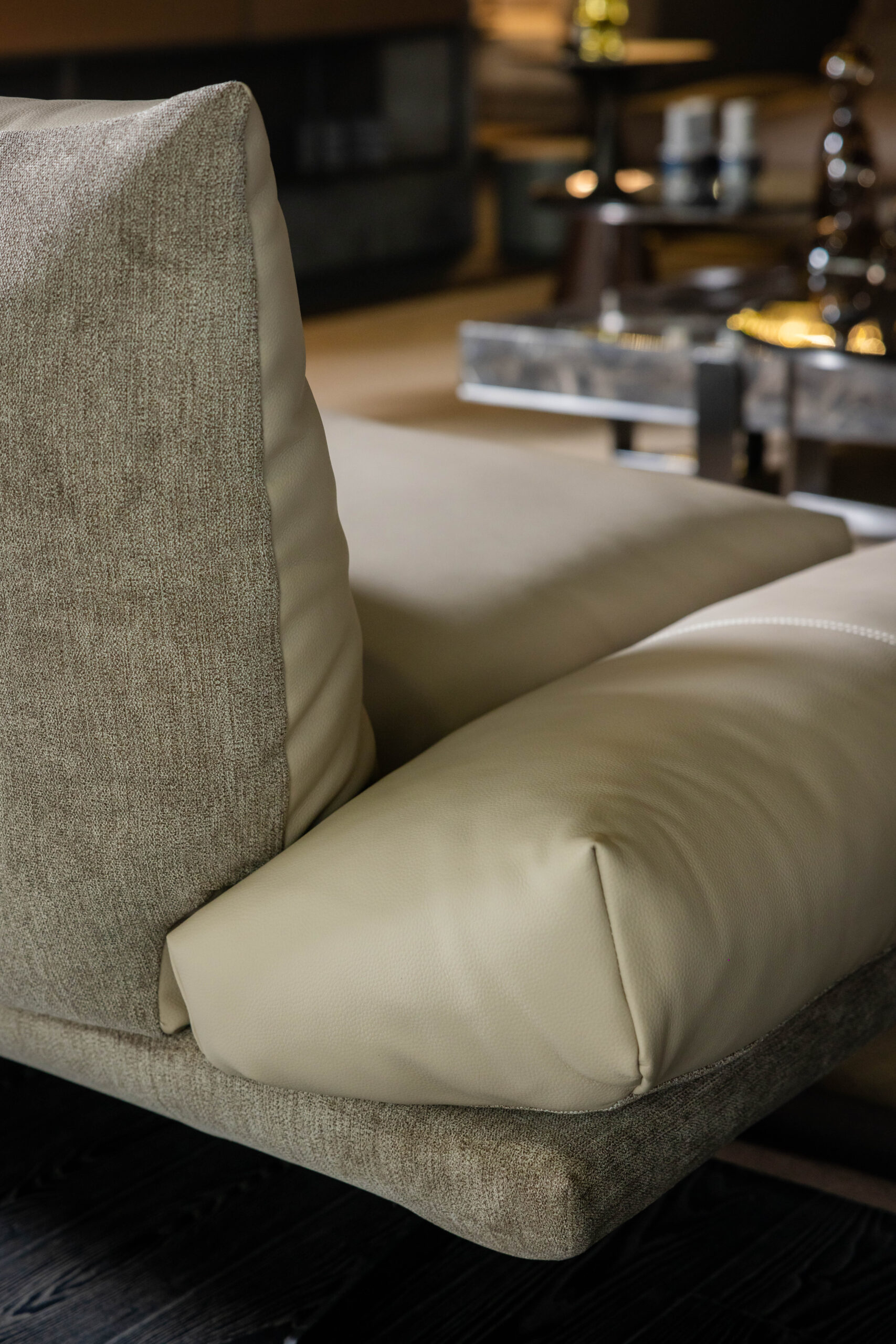 The Soffice sofa combines architectural elegance with modern sophistication. Its clean lines and soft curves complement various styles, while Gellyfoam and goose feathers ensure ultimate comfort. With modular configurations, including two-seater, three-seater, and sectional options, it adapts to any space. Featuring an adjustable backrest and Ica painted feet, the Soffice is both stylish and functional. Perfect for homes or hospitality settings, it elevates interiors with intelligent luxury and exceptional craftsmanship.