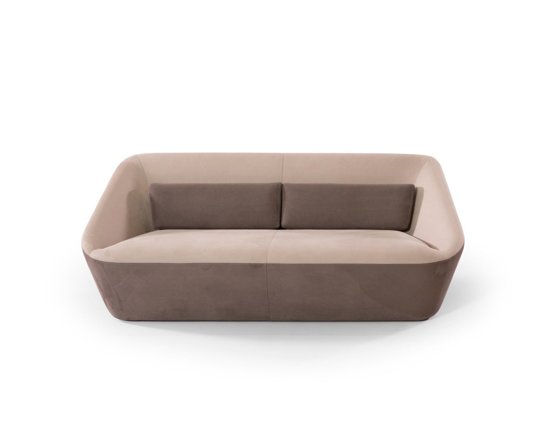 Spencer is a versatile sofa that effortlessly adapts to both formal and relaxed settings, thanks to its opulent design. Upholstery options include single-color, two-tone fabric, leather, or a combination of both for the outer and inner seat. It is complemented by a voluminous cube footrest, matching the upholstery for a cohesive look.