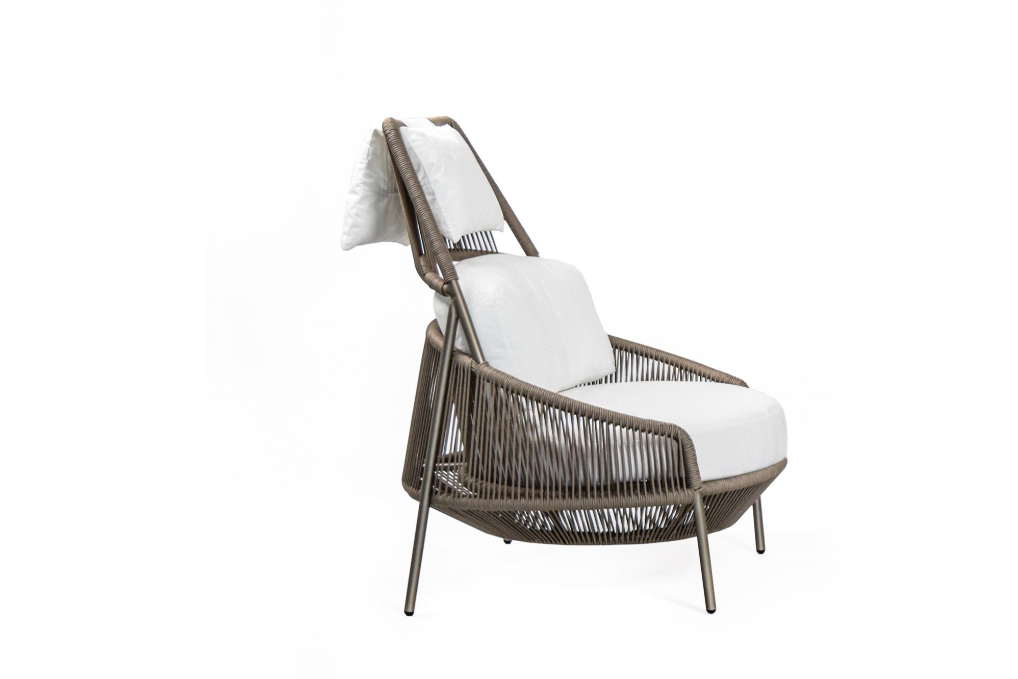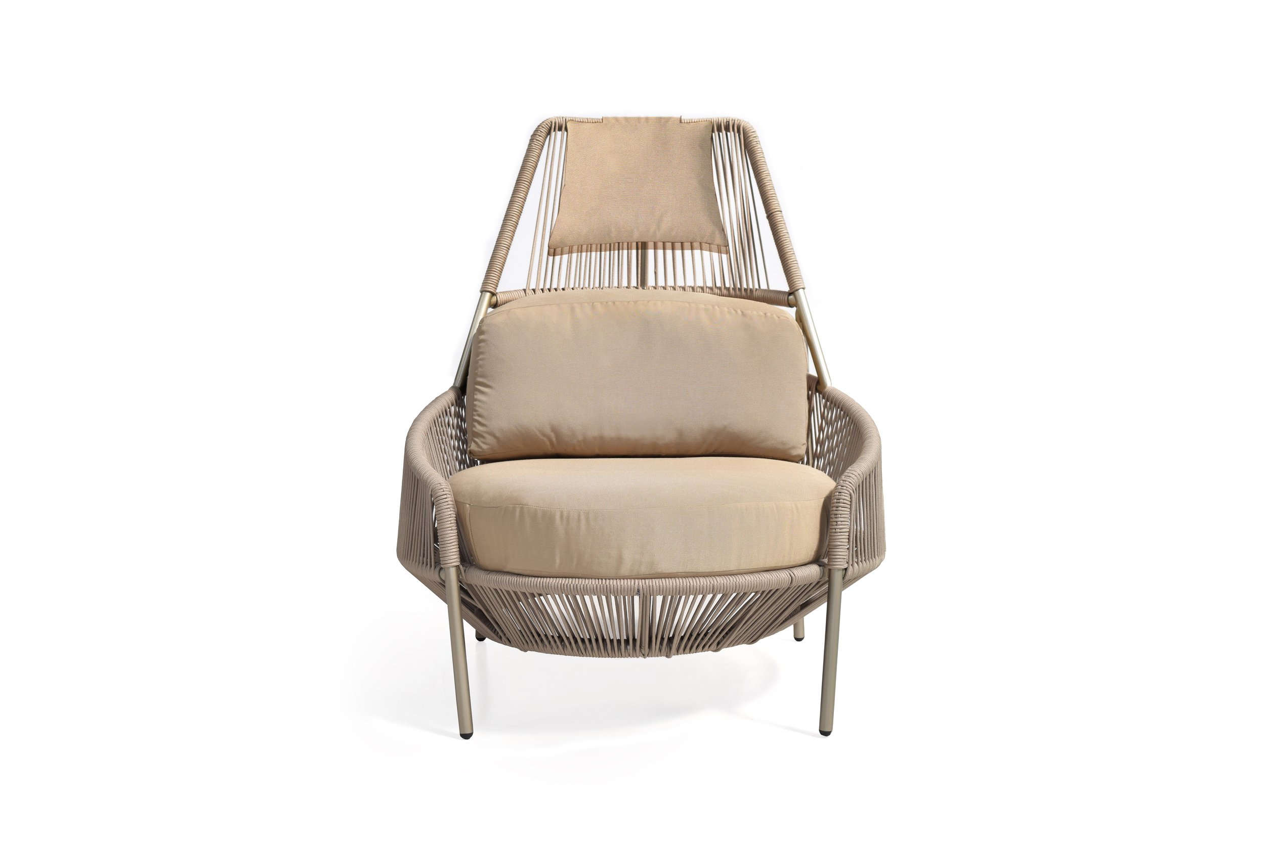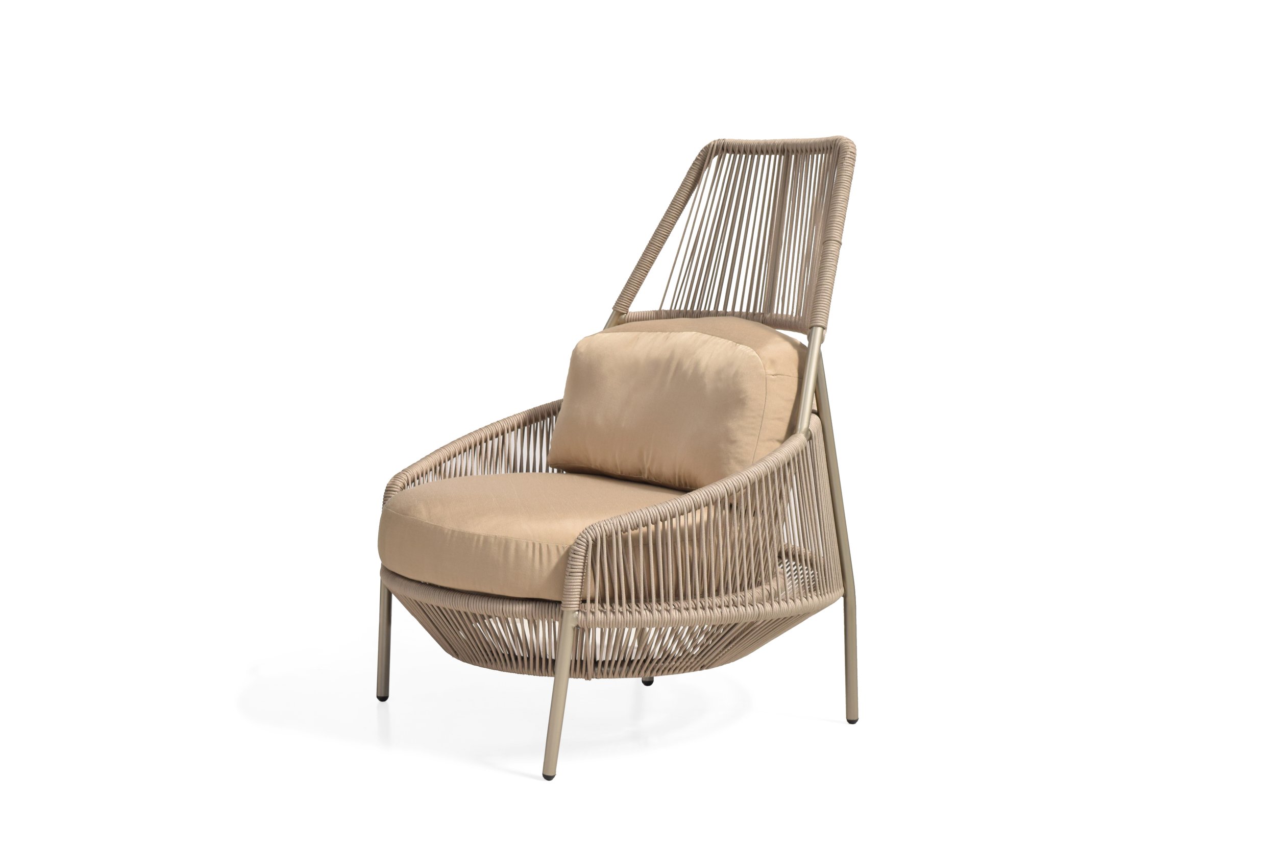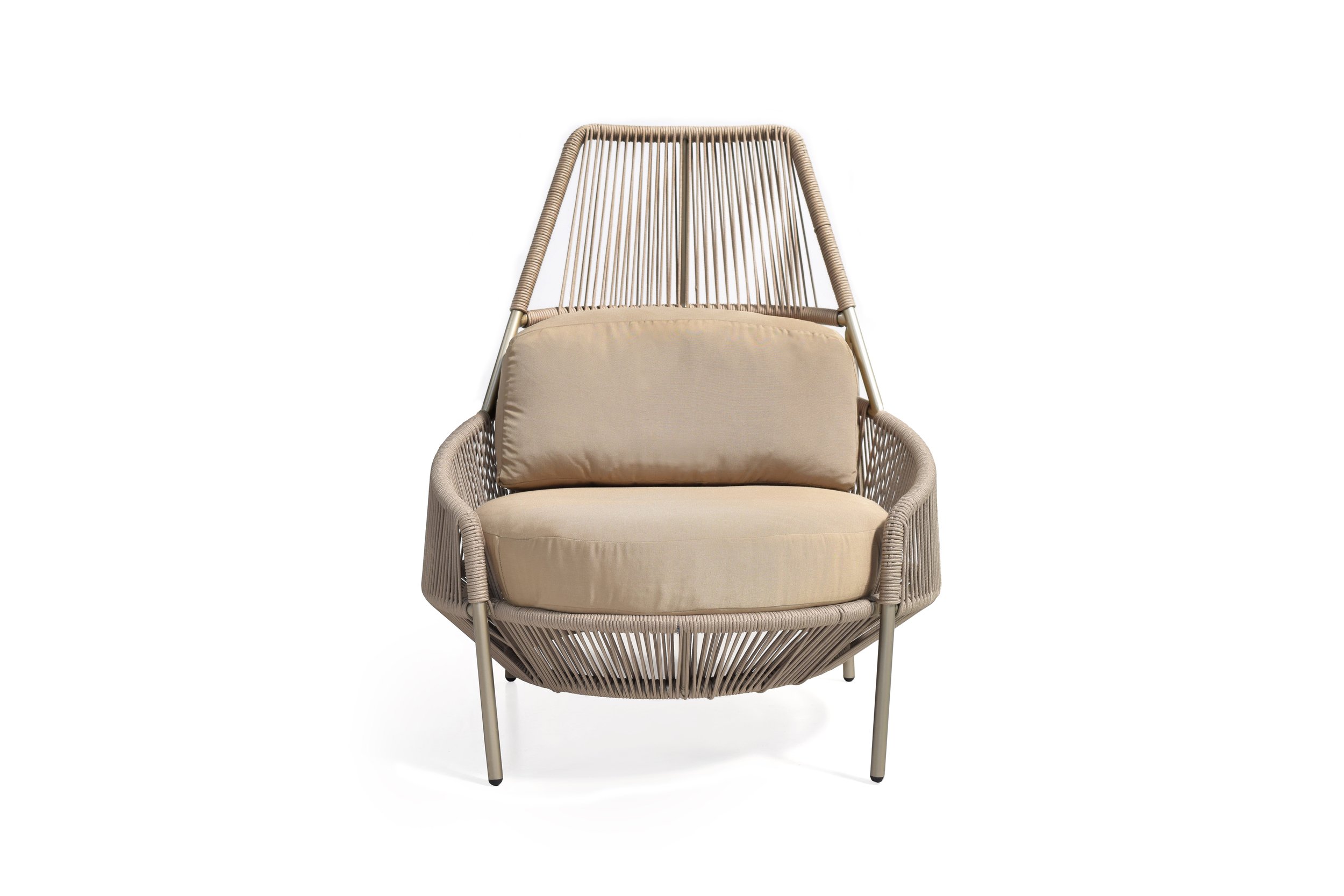 Our Sunray Max Outdoor Collection presents a contemporary design and is part of a series that includes a Sofa and two distinct armchair models. These pieces are crafted with a lightweight aluminum frame that can be enhanced with unique metallic shades, creating a stunning and long-lasting product. The customization options include selecting the colors and density of the rope, choosing the aluminum color, and deciding on the inner fabric.