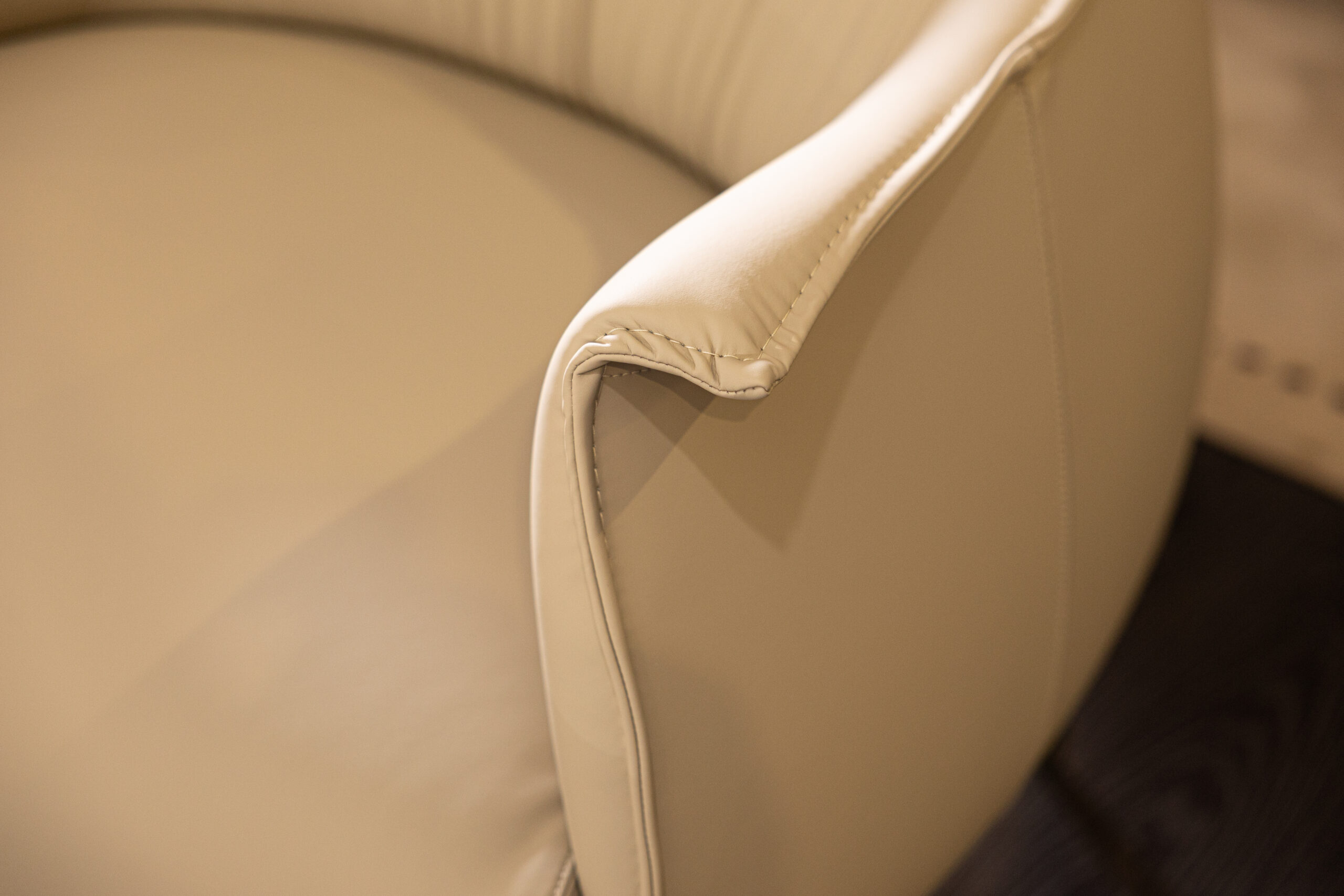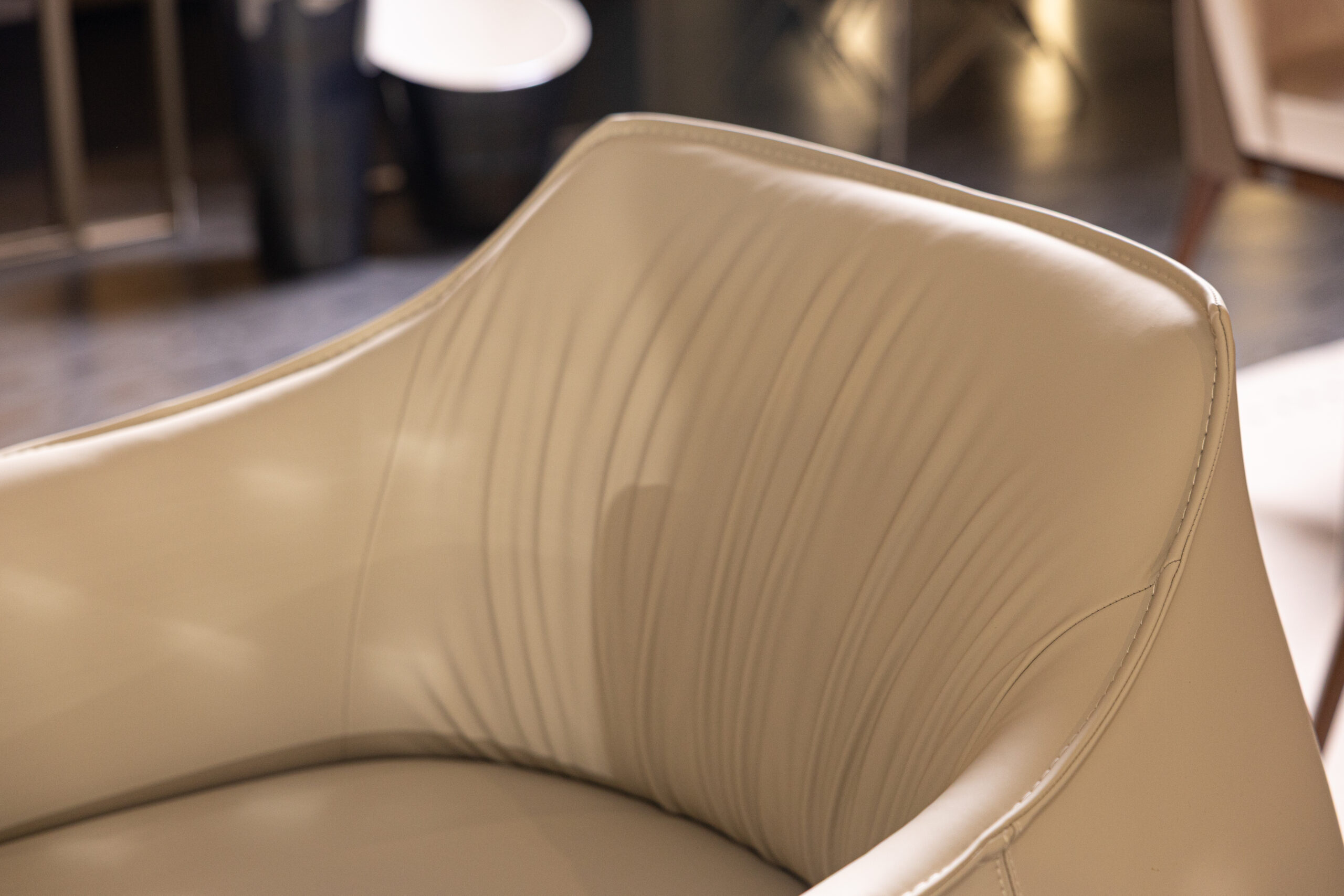 The Ted Armchair showcases a modern and sleek silhouette, softened with a sartorial touch evident in every detail. The sumptuous folds on the inside of the backrest, upholstered in leather, add a luxurious element to the design. The understated armrest, reminiscent of a slightly open shirt collar, exudes a deliberate and undeniably elegant charm, making it an ideal lounge chair for living room.