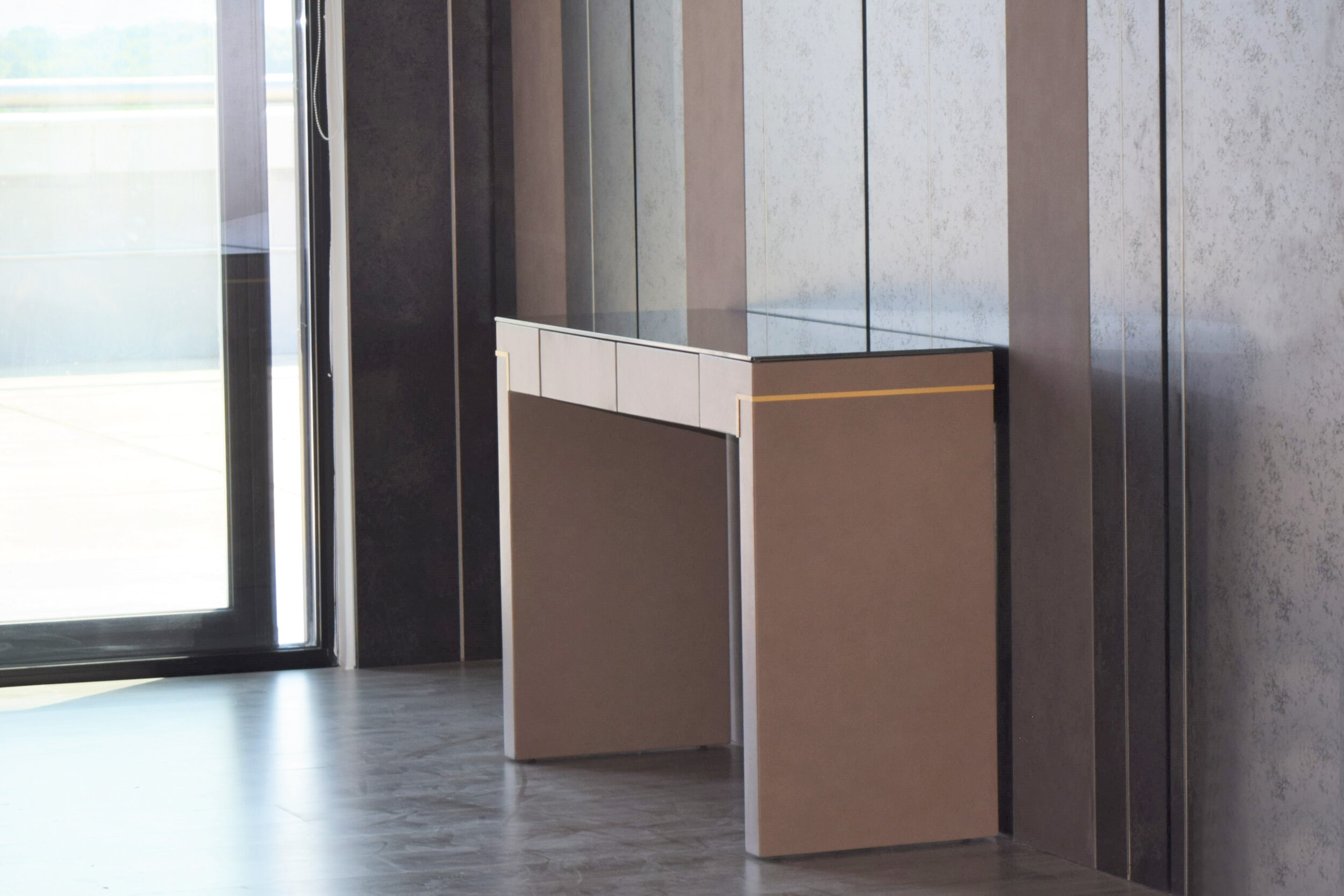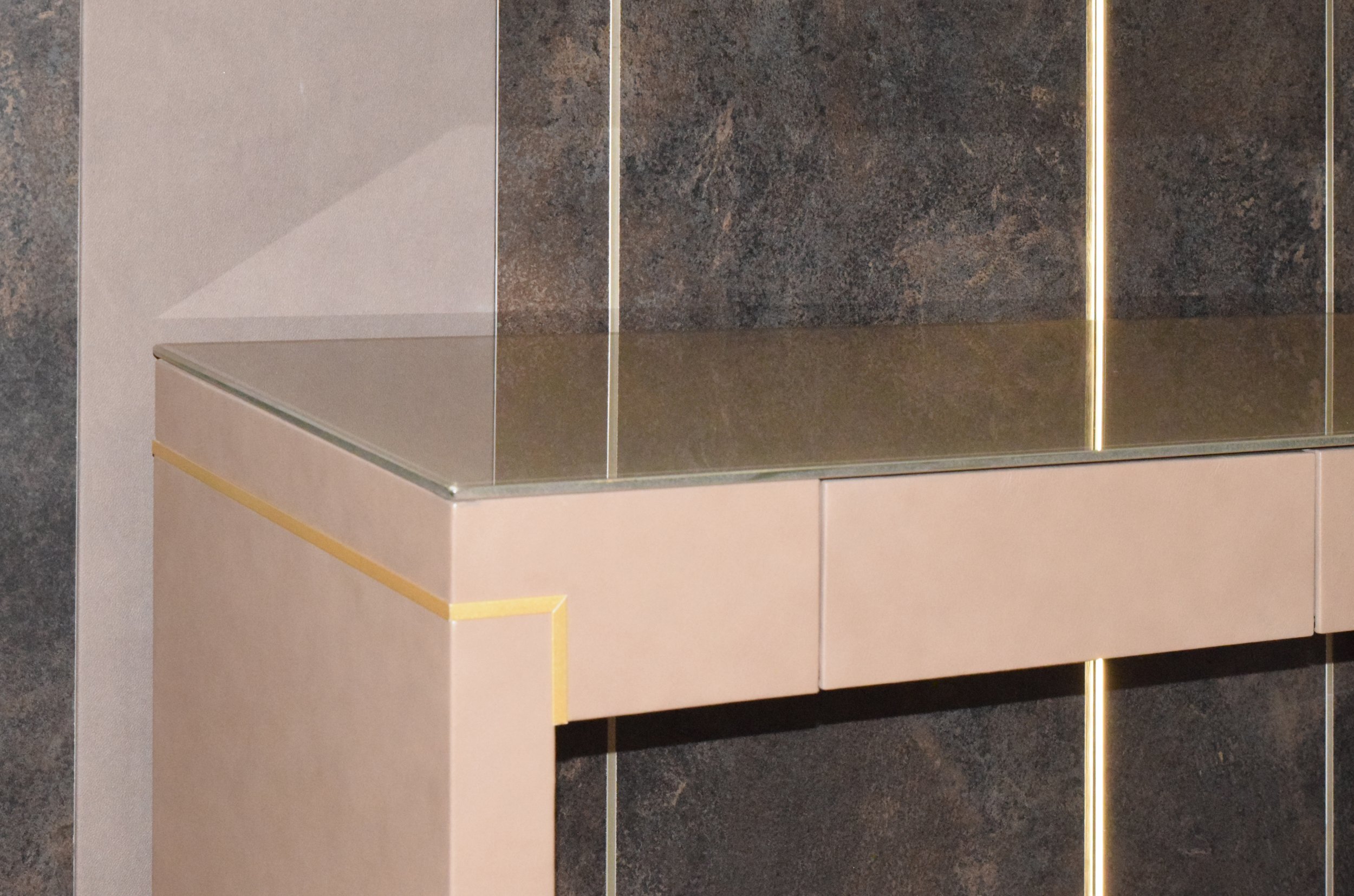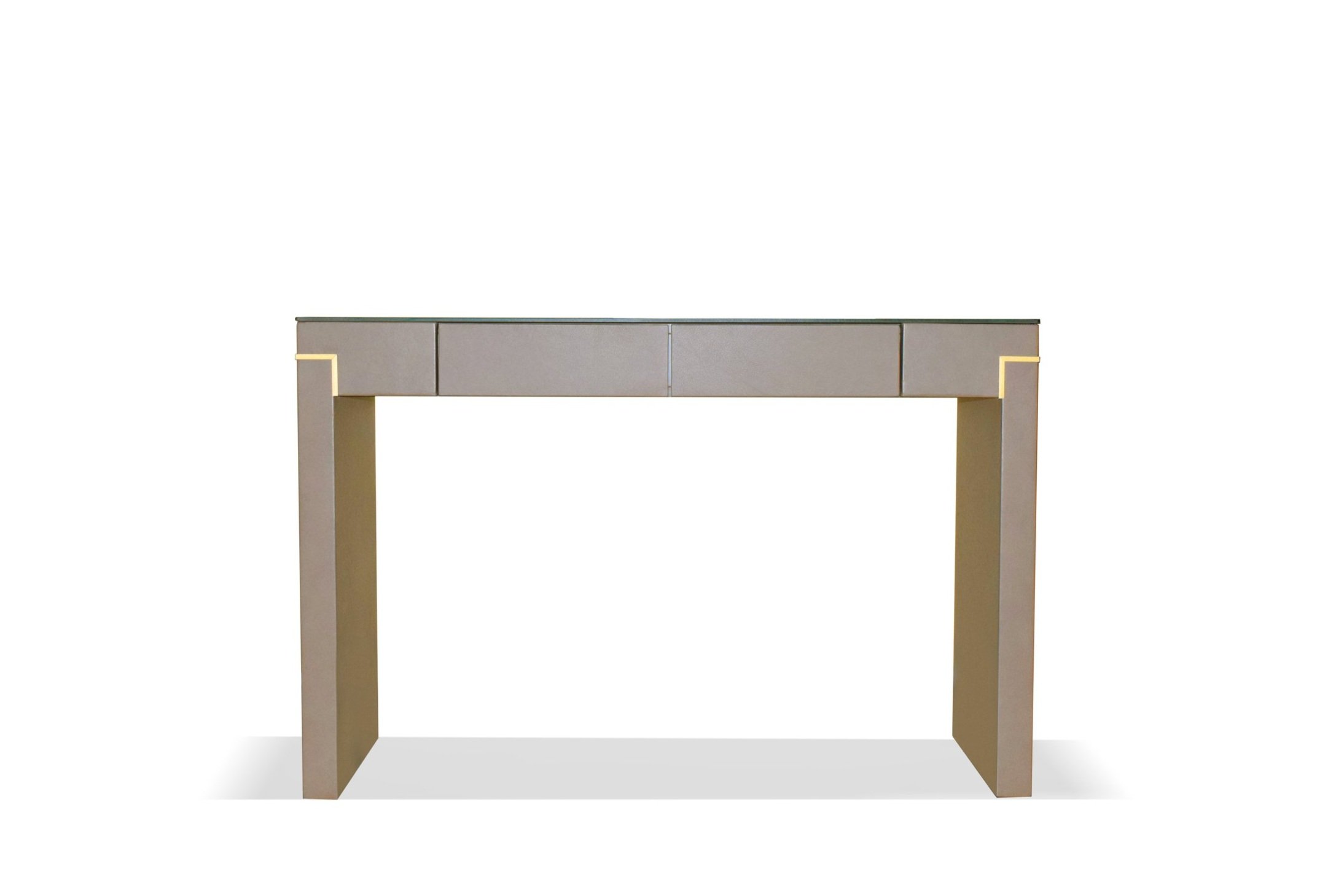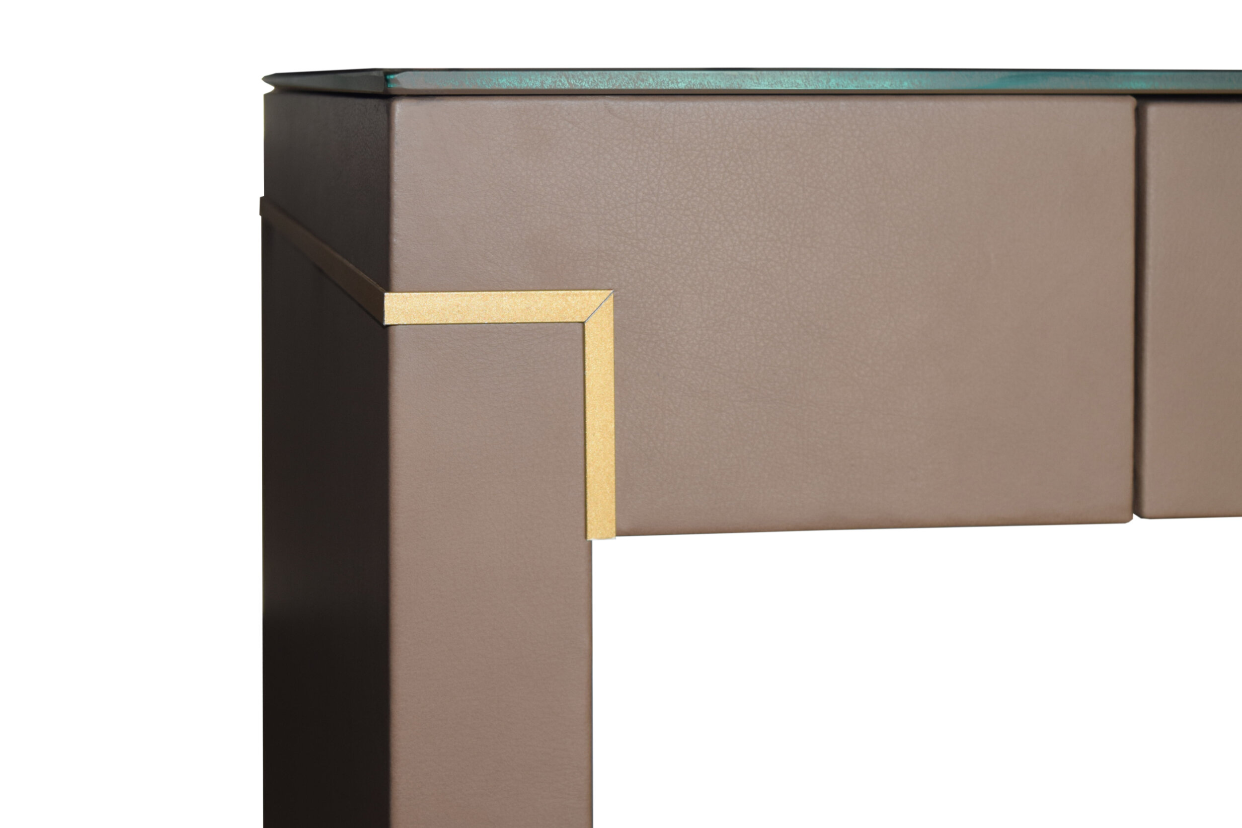 Tenet by Able is a chic and functional piece that combines elegance with practicality. Wrapped in all-over leather and adorned with a contrasting gold metallic stripe, it features MDF construction with push-to-open/close fabric upholstered drawers. The exterior boasts a walnut veneer finish, while the top offers customization options like tempered glass, leather, ceramic, or marble. Designed with Able’s commitment to tradition, craftsmanship, and high-quality materials, Tenet blends timeless elegance with modern aesthetics. Ideal for corporate, hospitality, or private spaces, it adds a harmonious atmosphere and impeccable sophistication to any environment.