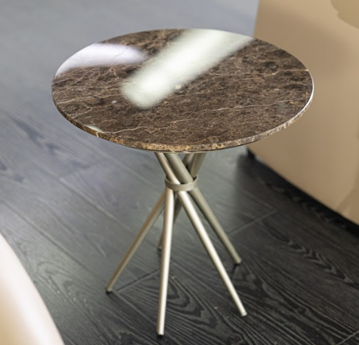 Tris effortlessly embodies the essence of a sofa table, exuding confidence and complementing any setting with its architectural design. Featuring a distinctive overlapping metallic base, it adds a touch of visual intrigue to its overall aesthetic.