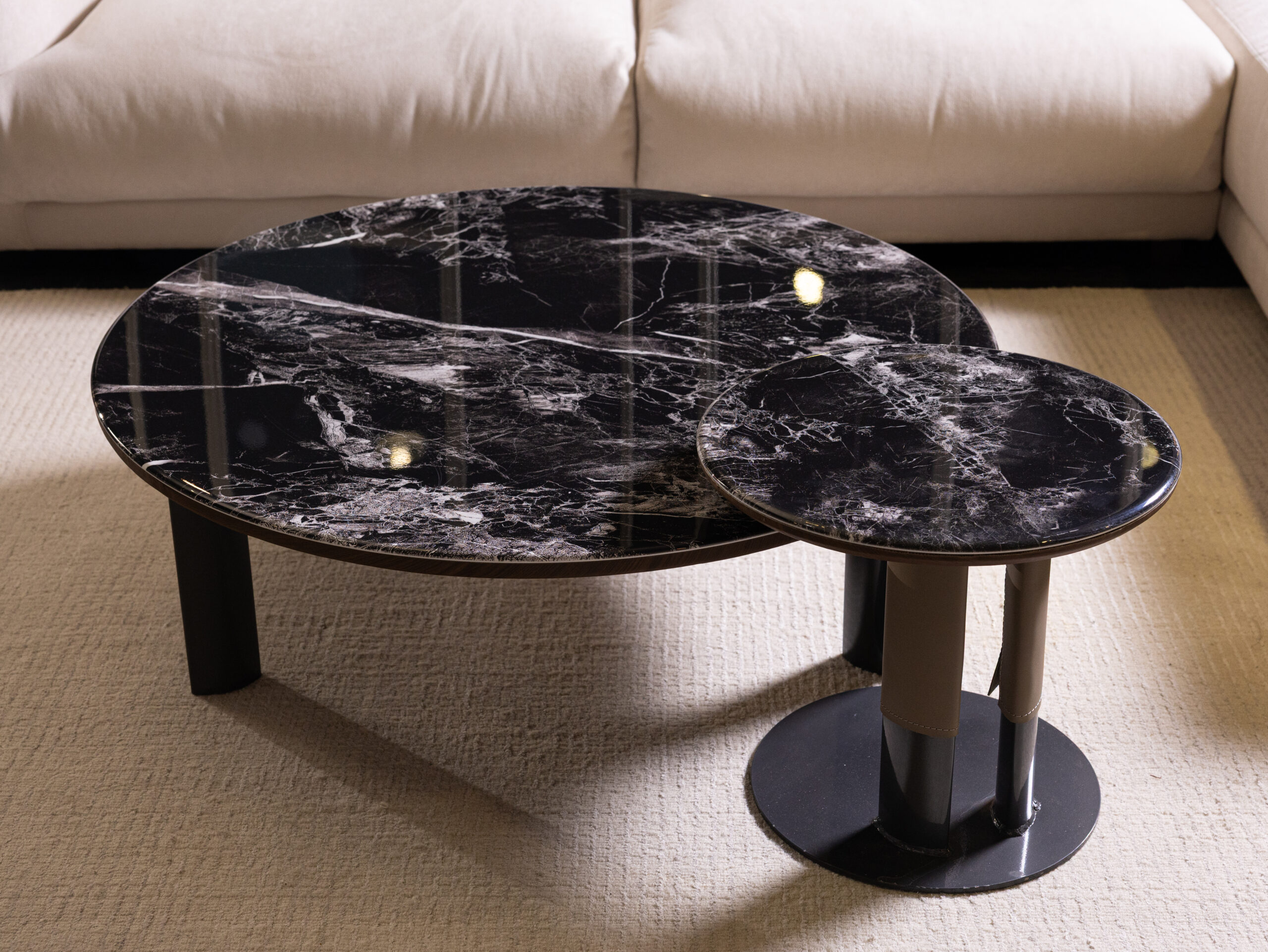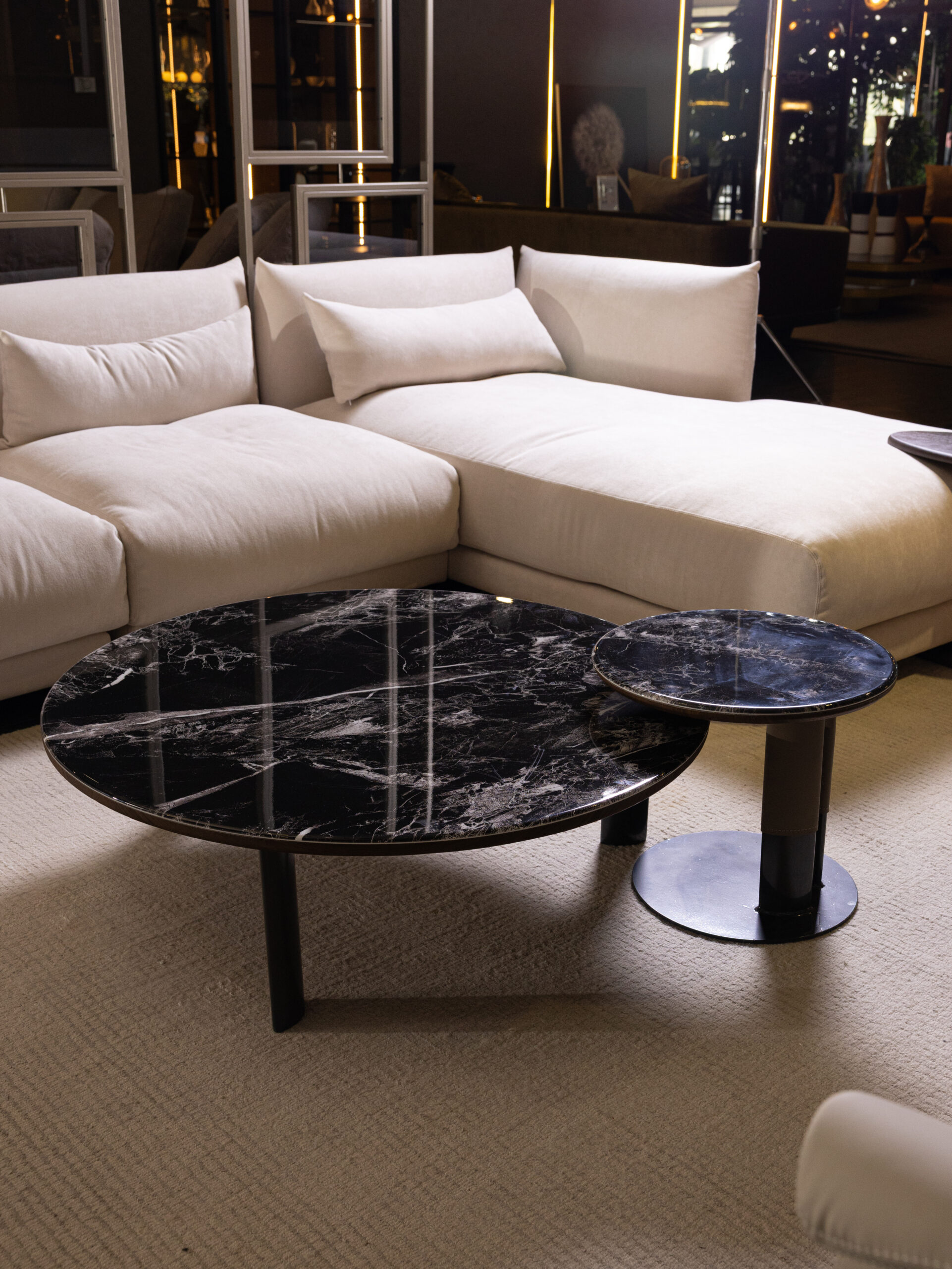 Vittoria coffee table is defined by its bold marble surface, where dramatic veining creates a natural work of art. The rich, polished finish enhances its depth and luminosity, lending a sese of refinement to any interior. Supported by sleek, understated legs, the design maintains a harmonious balance between strength and subtlety. Both functional and sculptural, it serves as a striking focal point while seamlessly blending with contemporary settings. A true expression of modern luxury, it elevates the living space with effortless sophistication.