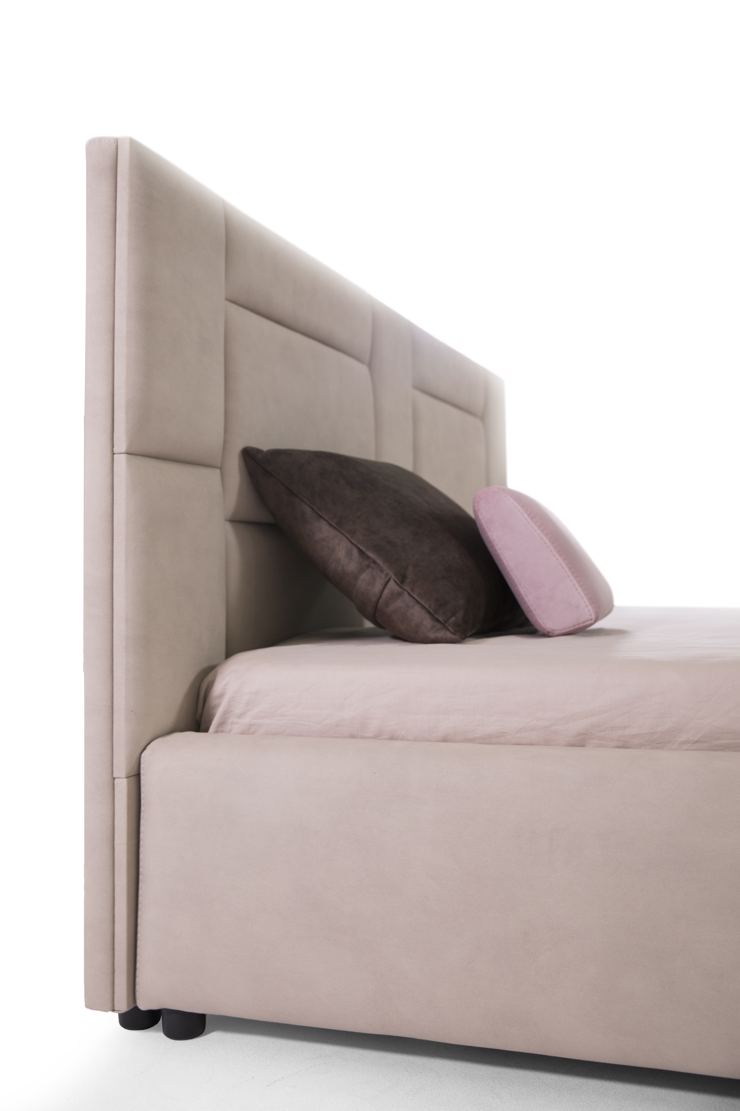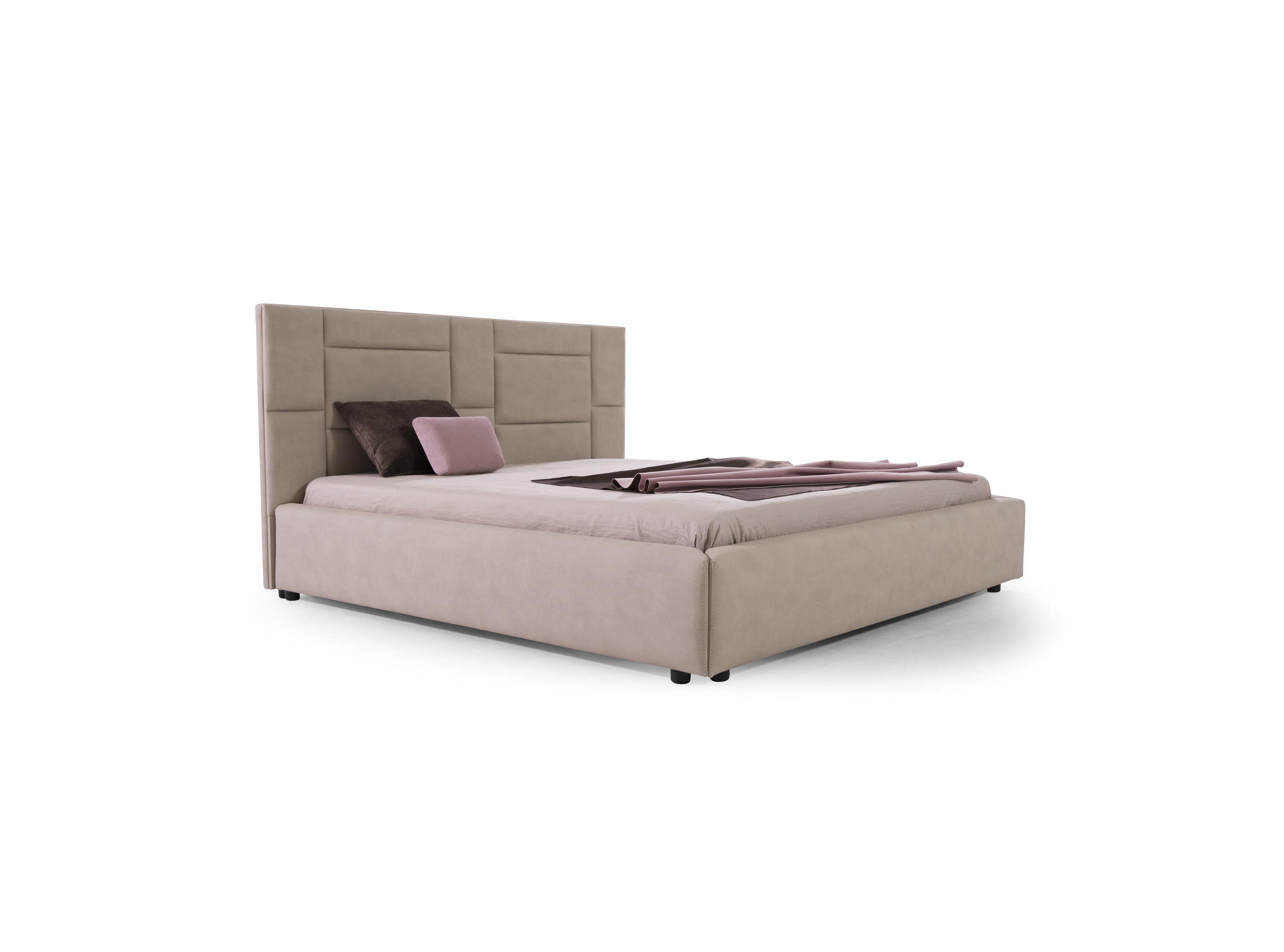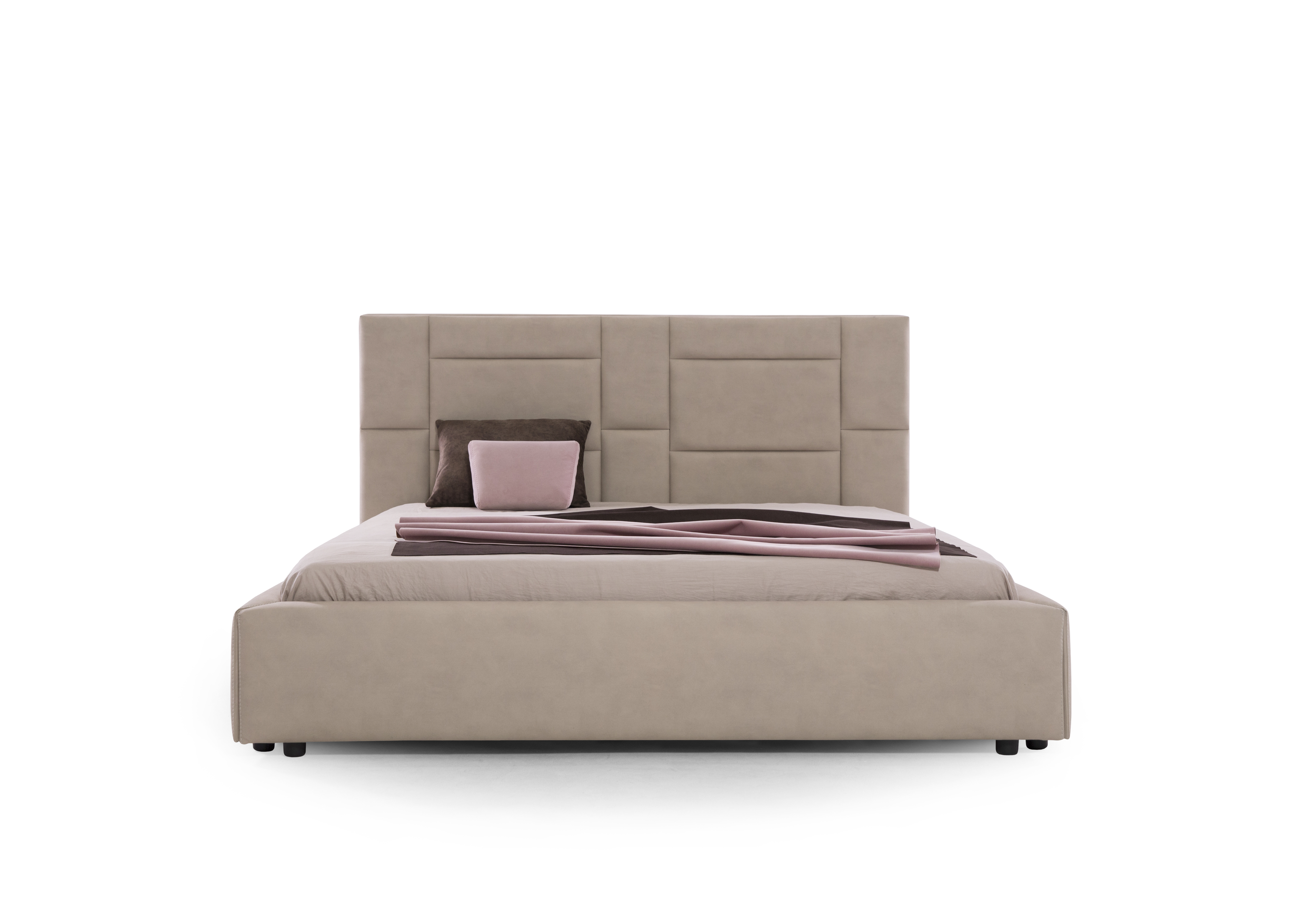 The Wallie Bed features a playful, puzzle-inspired headboard composed of geometric shapes, bringing a dynamic, engaging design to the bedroom. Its hand-tufted detailing epitomizes classical elegance, while its solid structure and premium materials offer durability and opulence. With a formal, sophisticated profile, Wallie combines modern aesthetics with comfort, featuring a generously padded headboard and customizable support platforms. Crafted with multilayered wood and flexible polyurethane foam, it ensures lasting comfort. Modern chrome-finished metal feet and a slim upholstered frame complete the design, making Wallie a contemporary, luxurious addition to any bedroom, ideal for both private and hospitality settings.