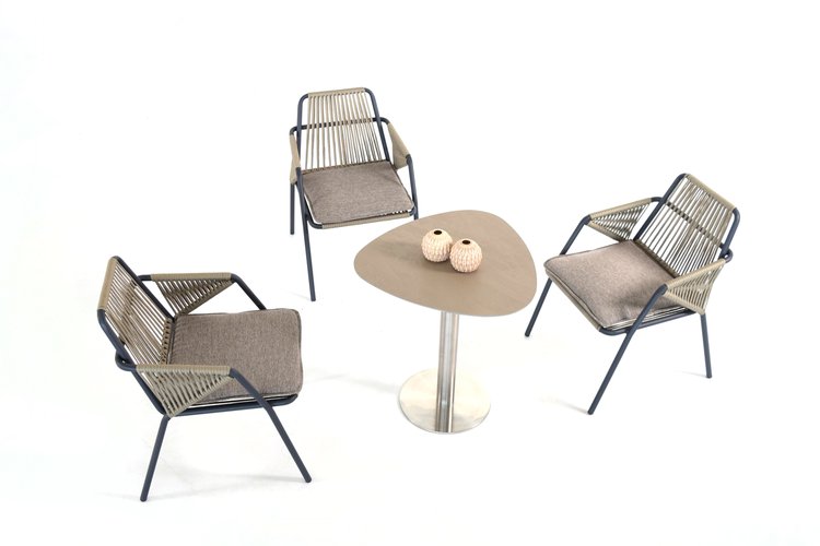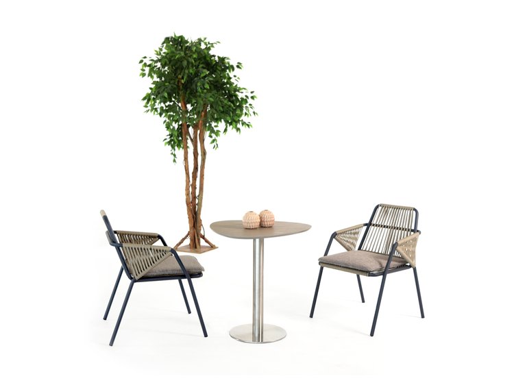 A compatible table with an essential and rigorous design, Westin, can be used in any place or context; developed for contract settings, it is also ideal for furnishing beautiful home spaces with an urban touch. A central powder coated steel leg supports a slatted top in Weather Resistant customizable. HPL/ceramic/marble.